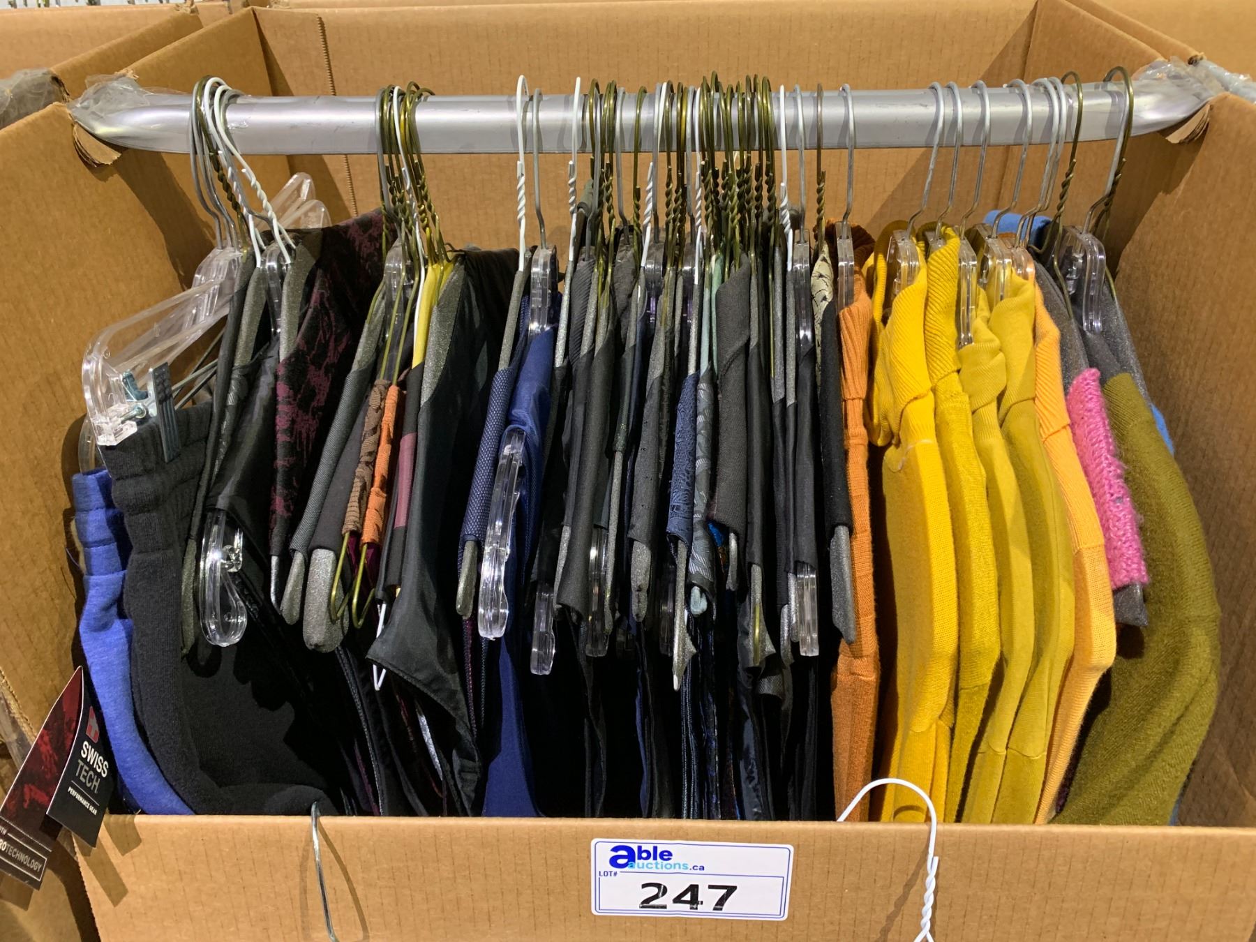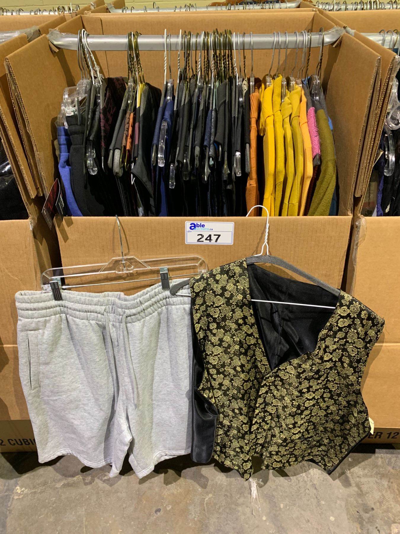 WARDROBE BOX OF ASSORTED CLOTHING INCLUDING; SWEAT SHORTS, VESTS & SWEATERS