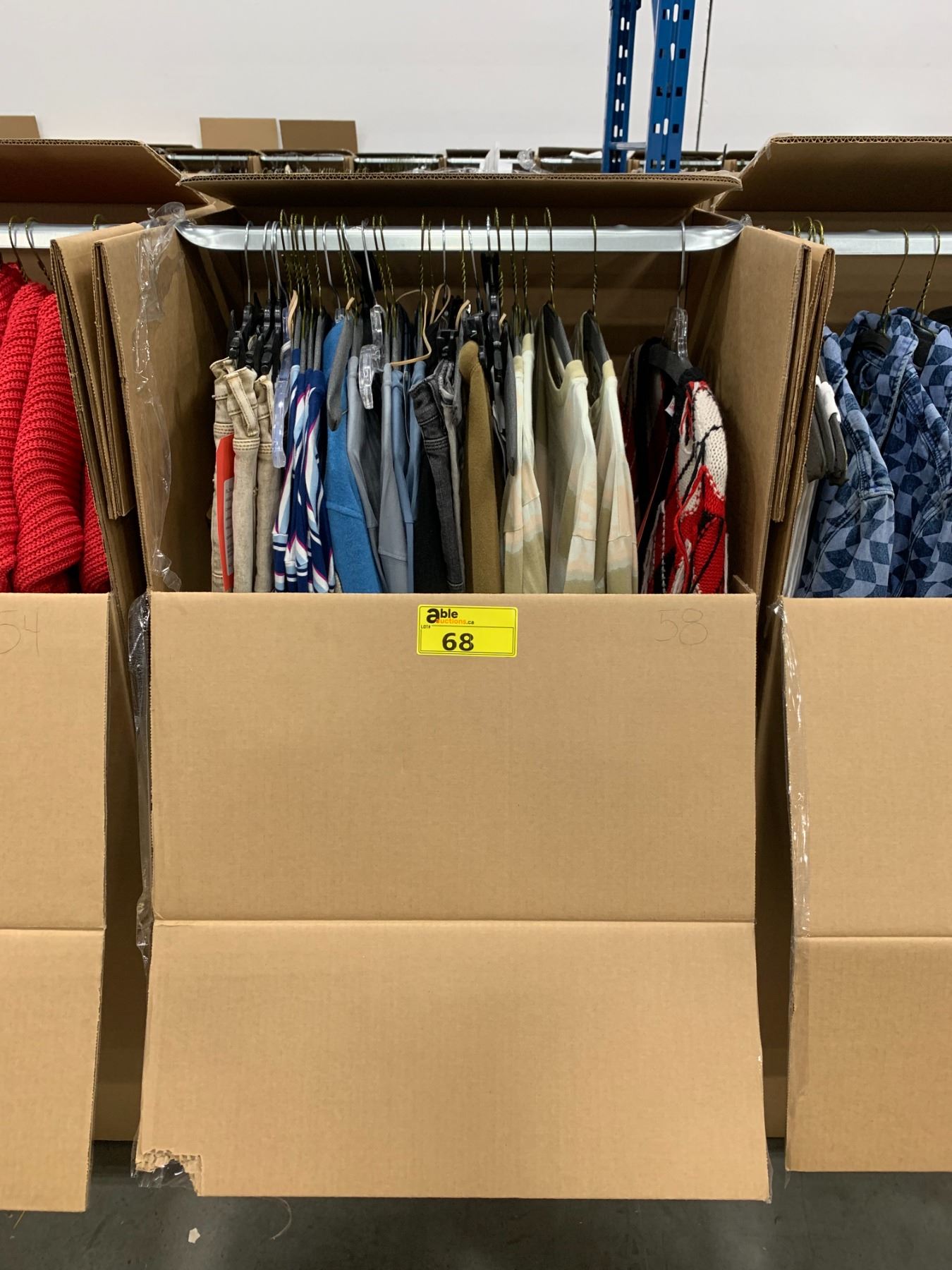 WARDROBE BOX WITH ASSORTED CLOTHING