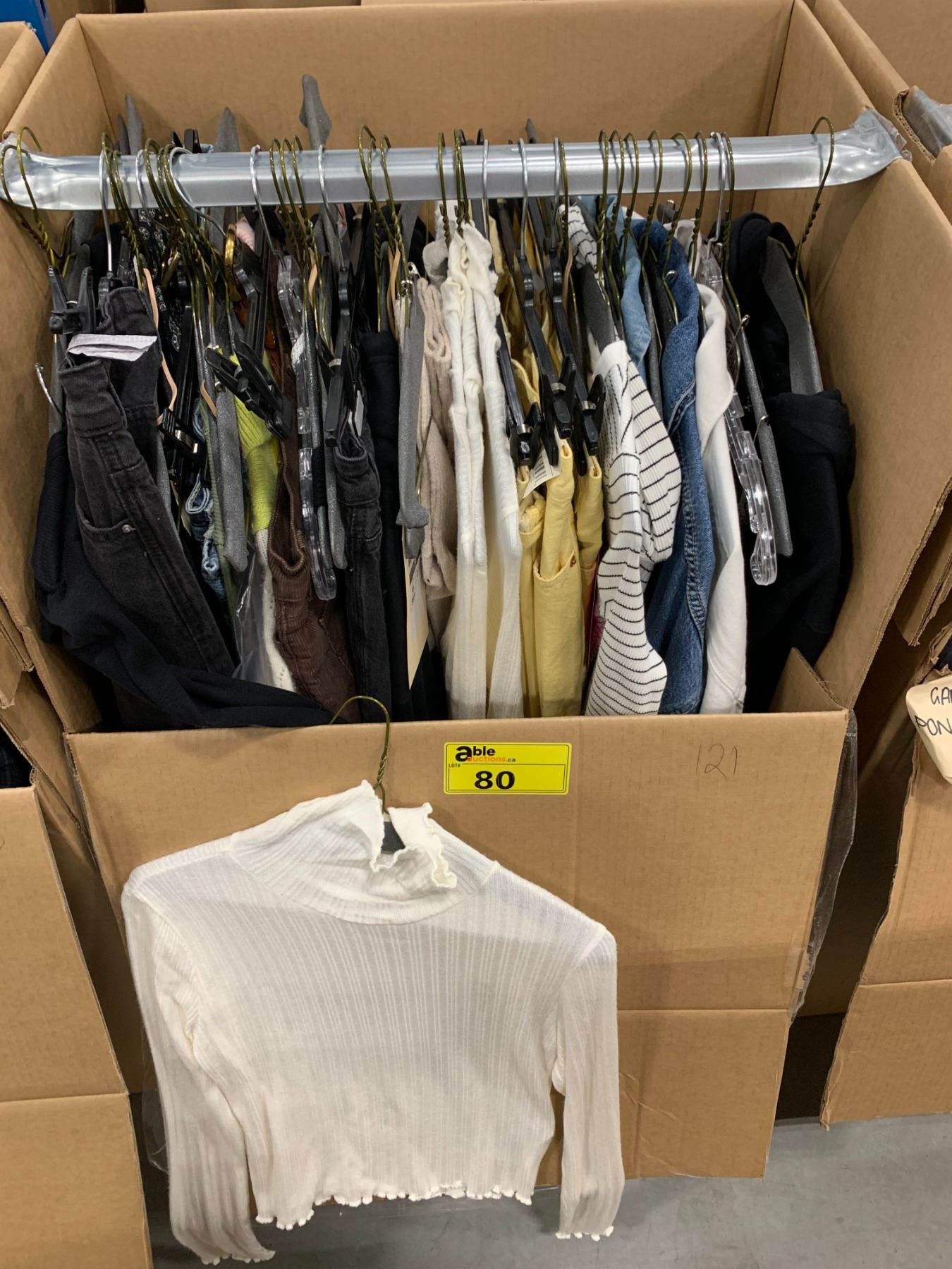 WARDROBE BOX WITH ASSORTED CLOTHING