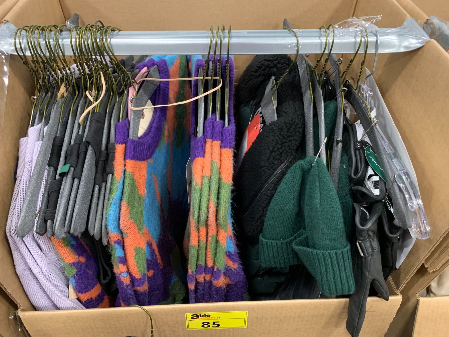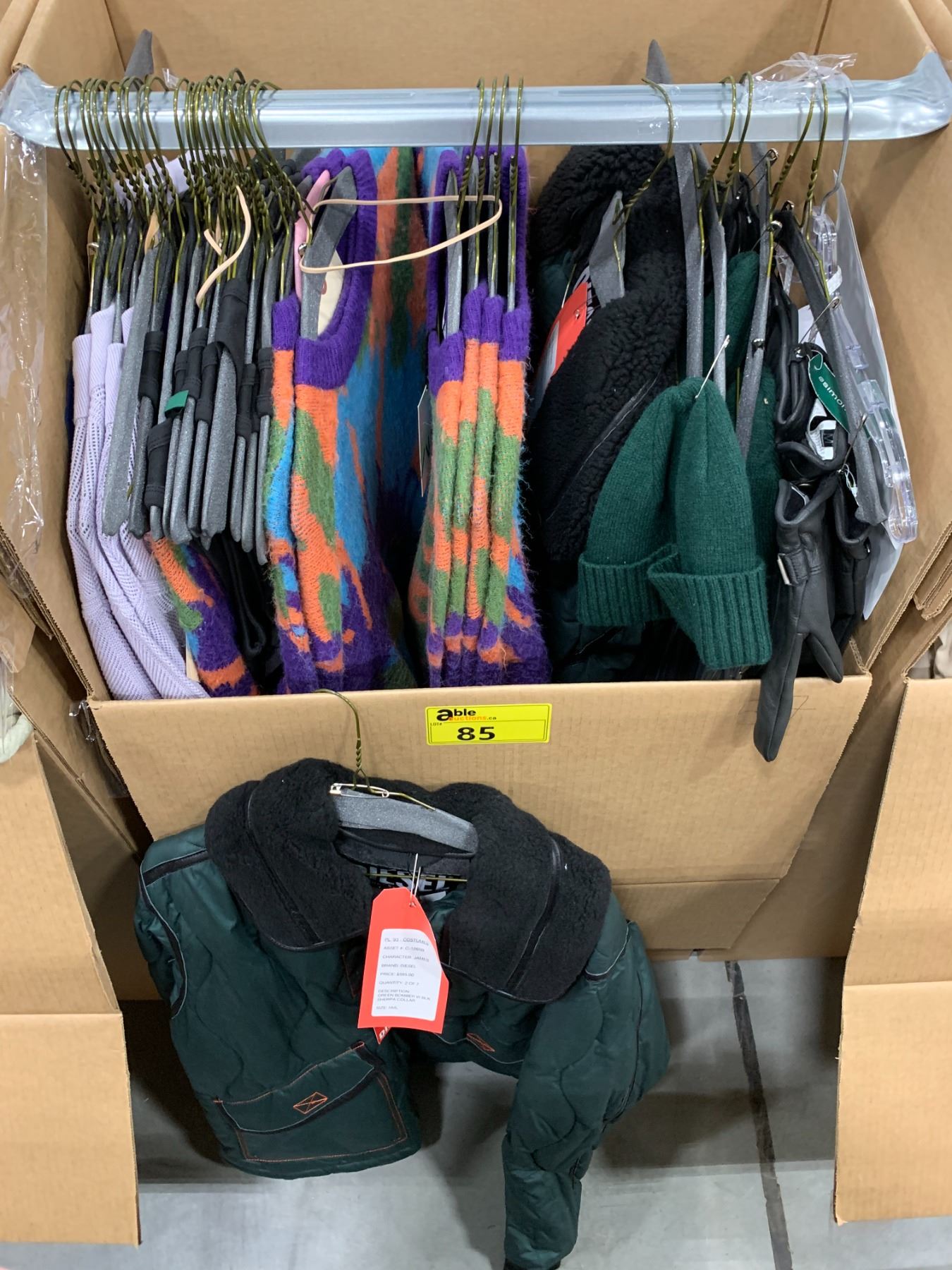 WARDROBE BOX WITH ASSORTED CLOTHING