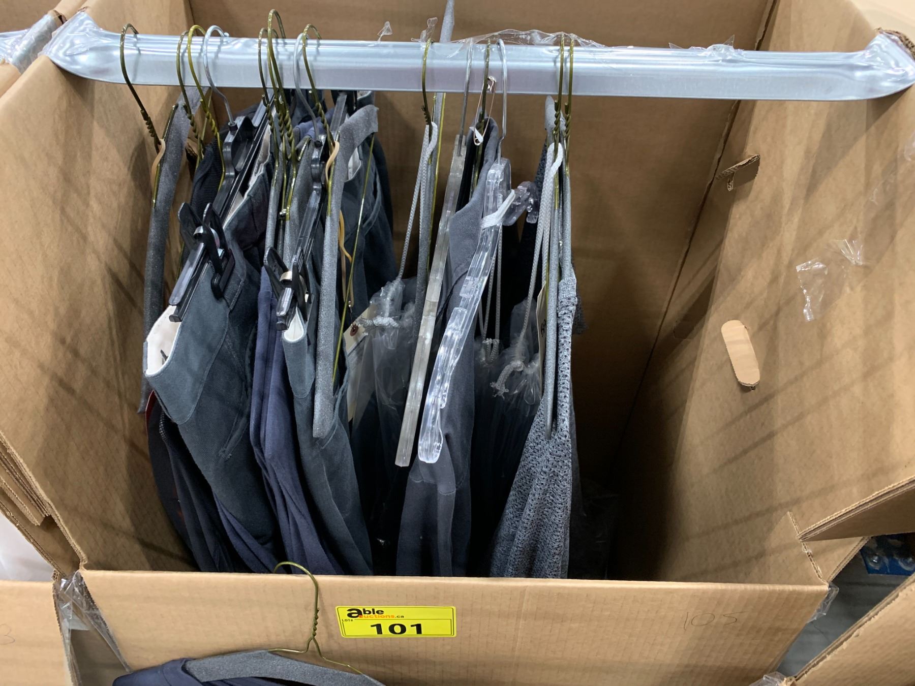 WARDROBE BOX WITH ASSORTED CLOTHING