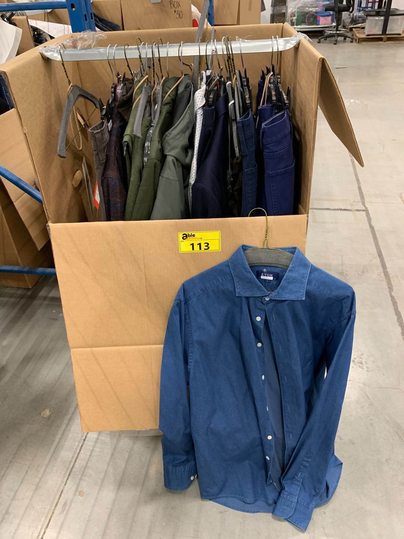 WARDROBE BOX WITH ASSORTED CLOTHING