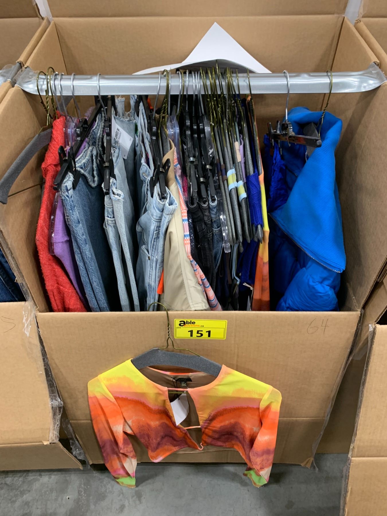 WARDROBE BOX WITH ASSORTED CLOTHING