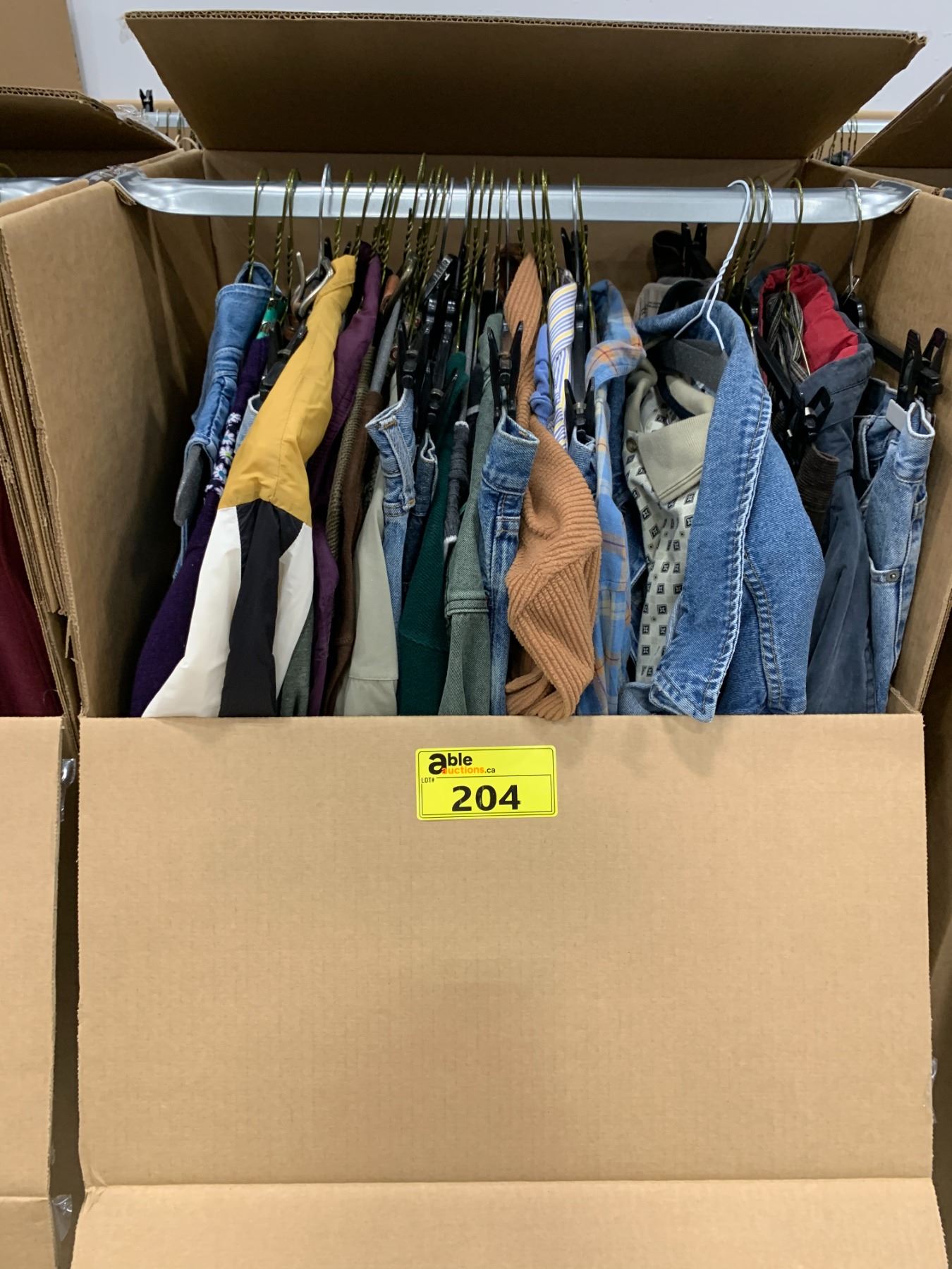 WARDROBE BOX WITH ASSORTED CLOTHING