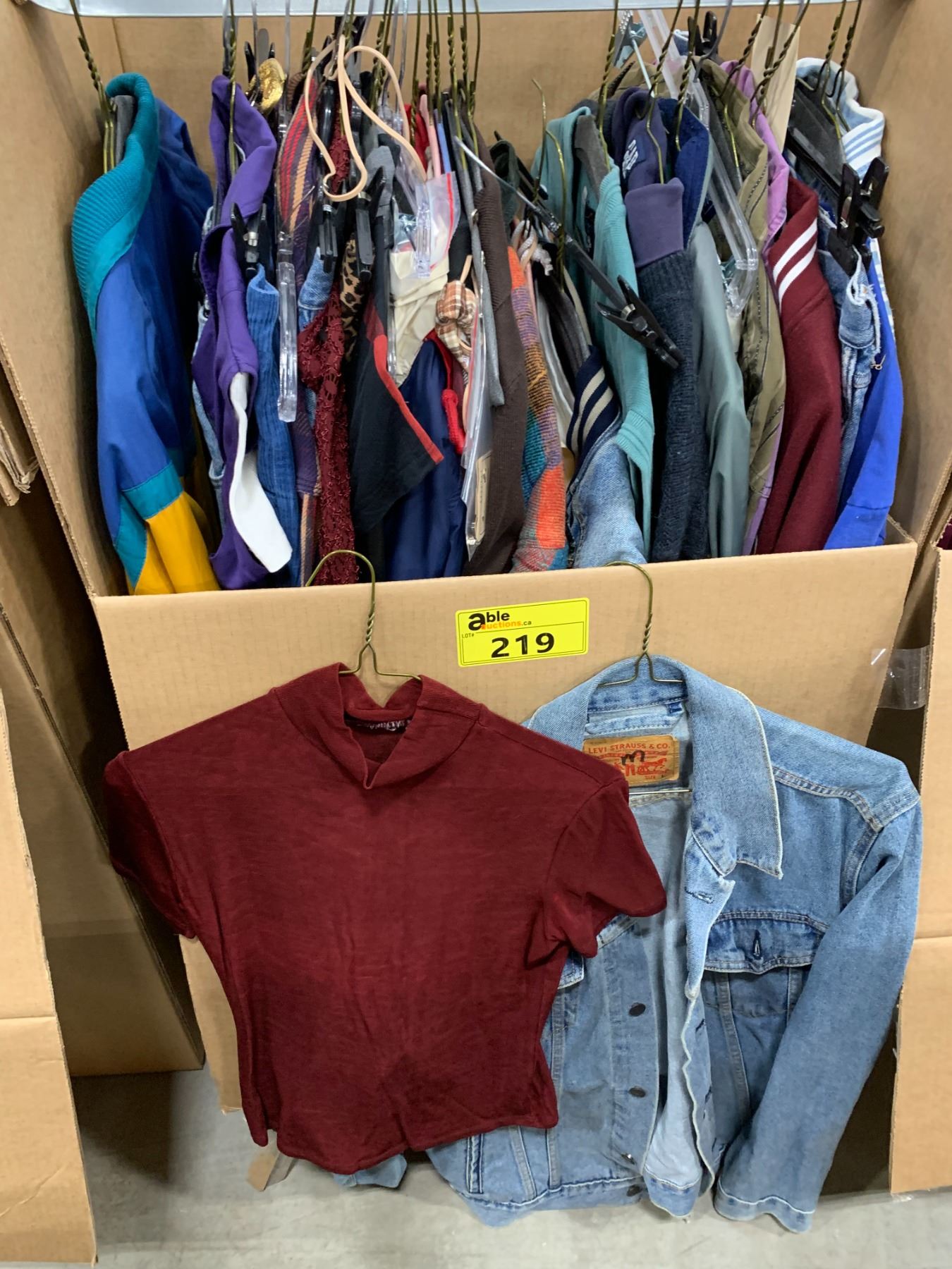 WARDROBE BOX WITH ASSORTED CLOTHING