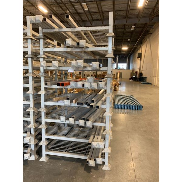 32 BAYS OF 10' X 2' PRODUCT STORAGE SHELVING AND REMAINING CONTENTS INCLUDING UPRIGHTS, CROSSBEAMS