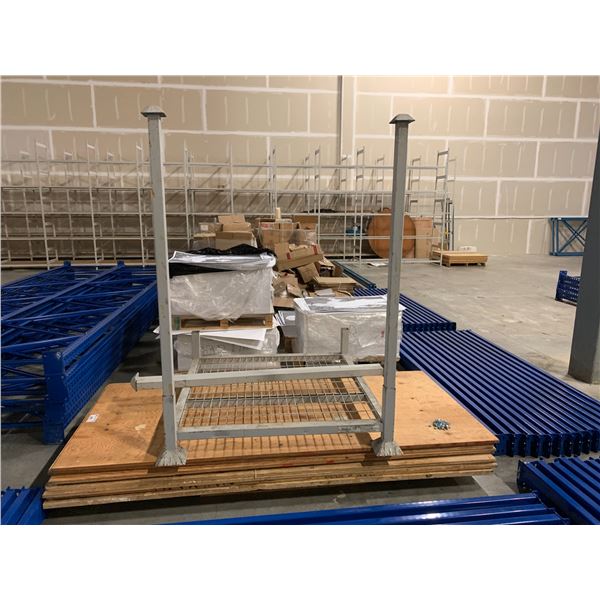 PALLET OF 8 SHEETS OF PLYWOOD AND STACKABLE 4' X 4' PRODUCT STORAGE CRATE