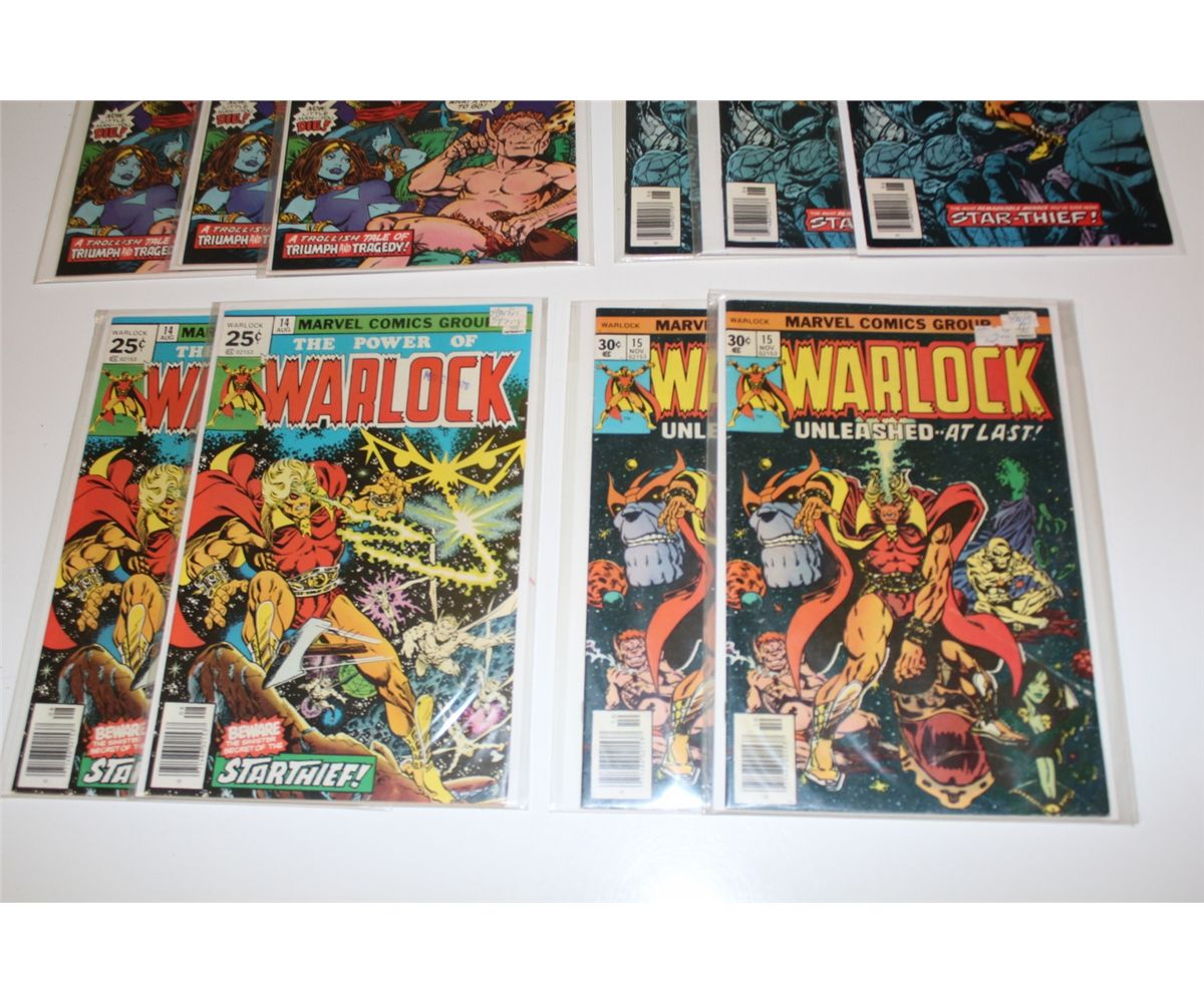 WARLOCK #9-15 & STRANGE TALES #178-181 (1975-76) 2 COMPLETE SETS OF JIM STARLIN'S THANOS SAGA + DUPLICATES. THANOS IN UPCOMING AVENGERS 2 MOVIE. 27 BOOKS TOTAL, MIXED GRADES WITH MANY SHARP COPIES, NICE LOT!
