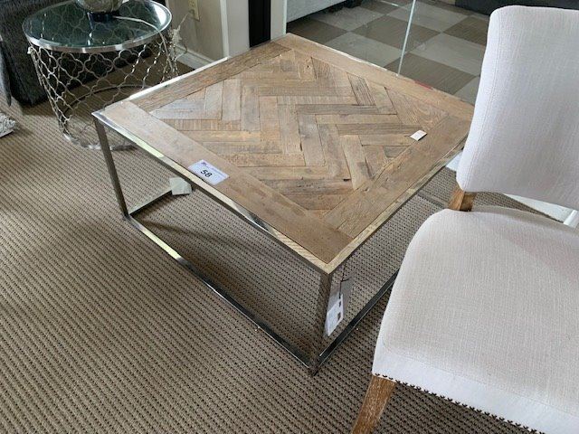 WARNER CHROME & RECLAIMED WOOD 35" X 35" COCKTAIL TABLE