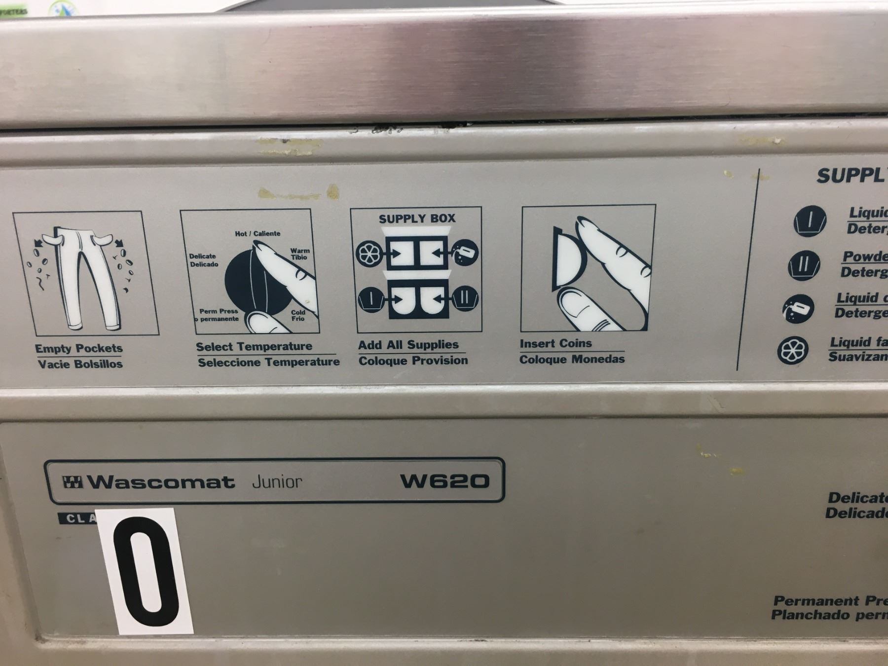WASCOMAT JUNIOR W620 COIN OPERATED COMMERCIAL WASHING MACHINE #10 (S/S FRONT) ***REMOVAL & PROFESSIONAL DIS-CONNECTION IS THE RESPONSIBILITY OF BUYER***