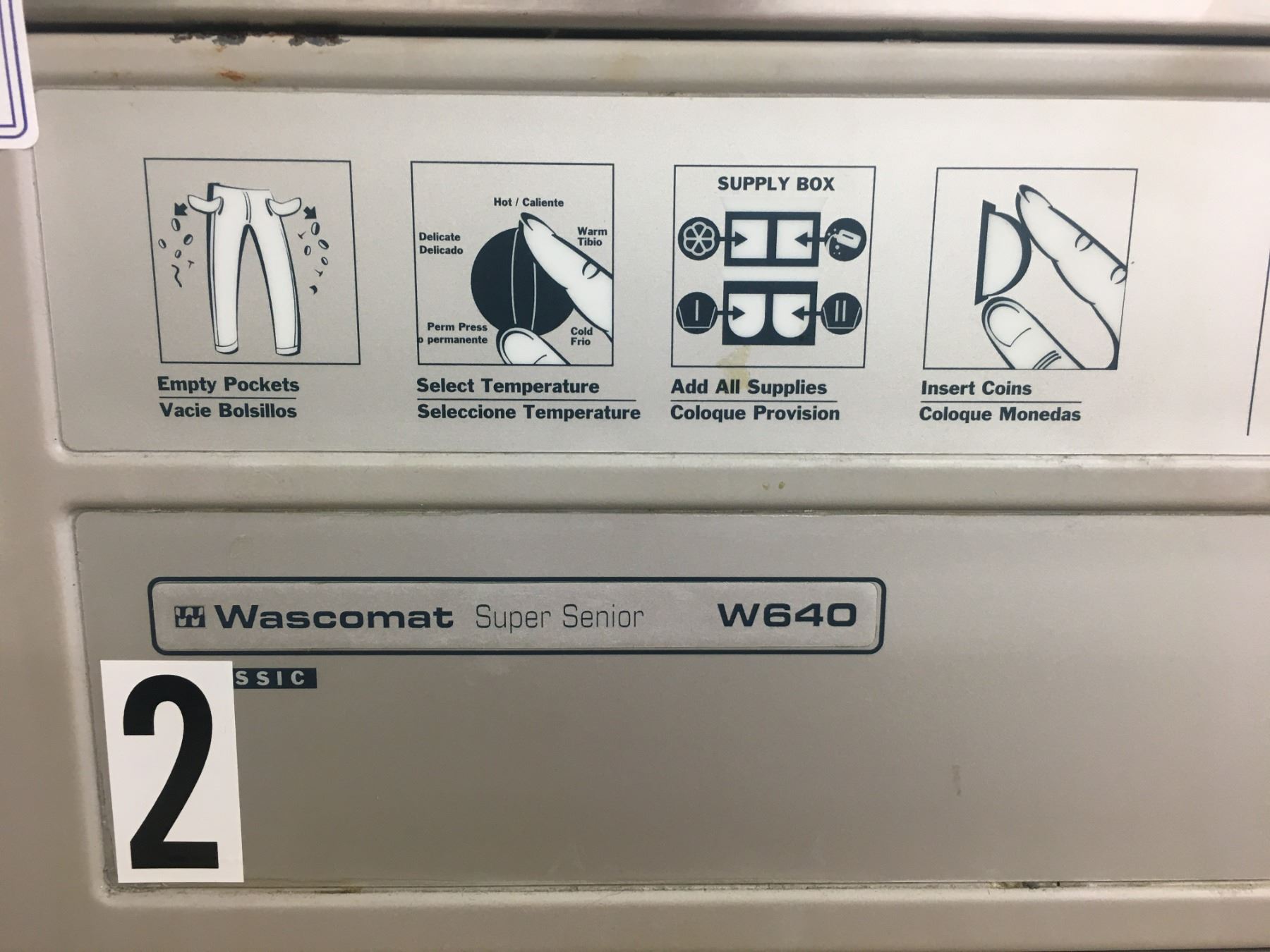 WASCOMAT SUPER SENIOR W640 COIN OPERATED COMMERCIAL WASHING MACHINE #2 (S/S FRONT) ***REMOVAL & PROFESSIONAL DIS-CONNECTION IS THE RESPONSIBILITY OF BUYER***