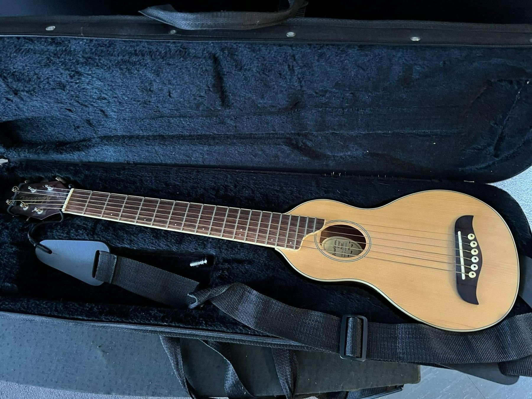 WASHBURN ROVER TRAVEL ACOUSTIC GUITAR - MODEL R010 - SPRUCE TOP MAHOGANY BACK & SIDES - USED WITH CASE - EXCELLENT CONDITION