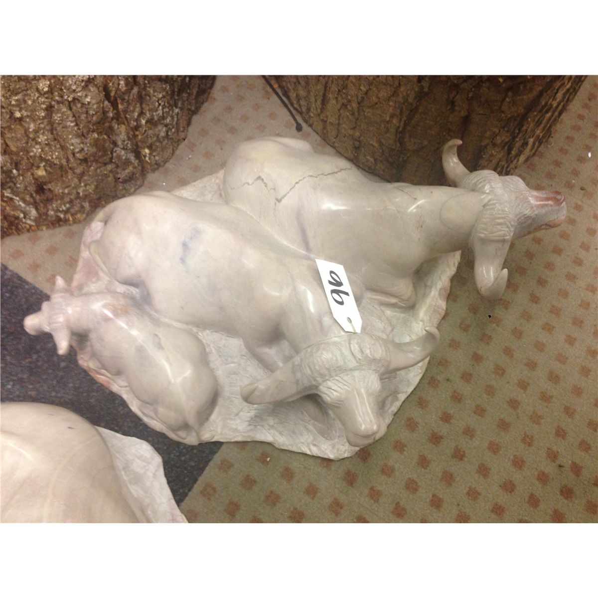WATER BUFFALO FAMILY OF 3, HAND CARVED FROM KENYAN SOFT STONE. 6" TALL 16" LONG