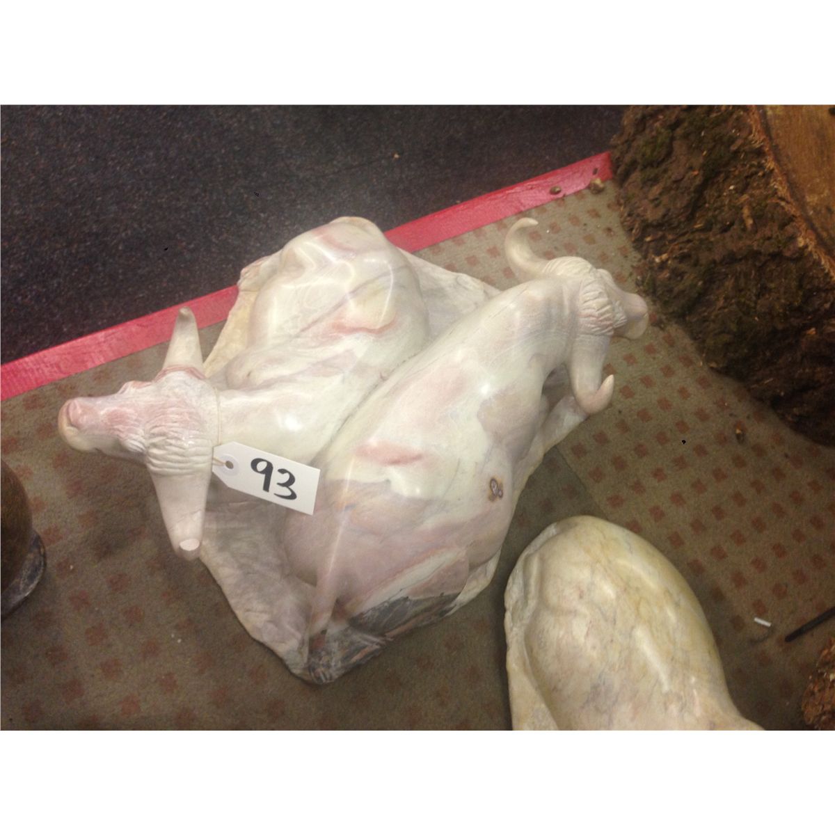 WATER BUFFALO PAIR, HAND CARVED FROM KENYAN SOFT STONE. 6" TALL 15" LONG