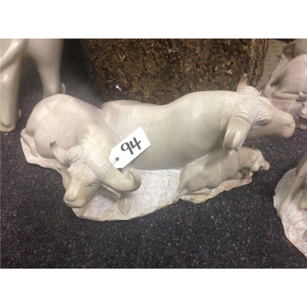 WATER BUFFALO PAIR, HAND CARVED FROM KENYAN SOFT STONE. 6" TALL 15" LONG