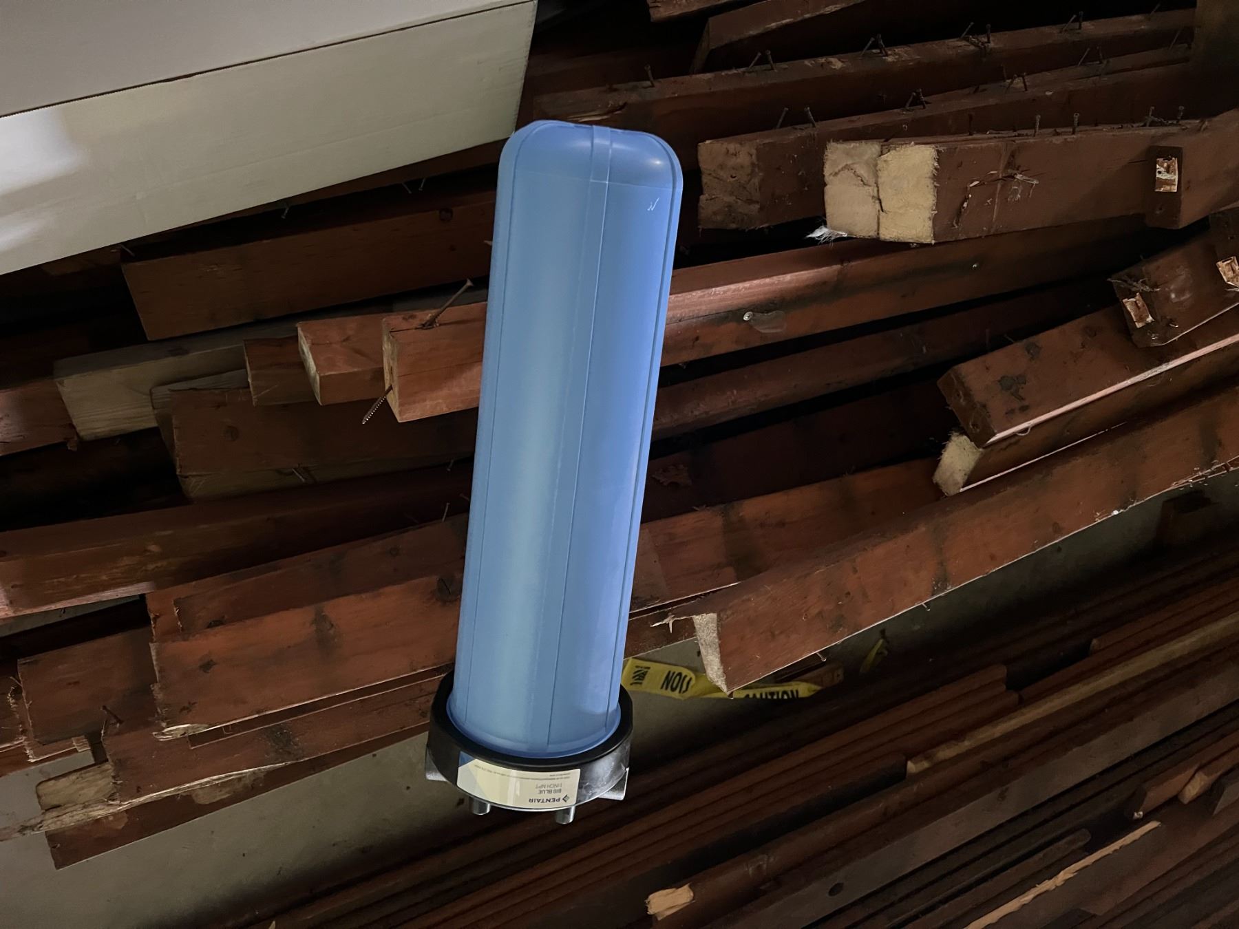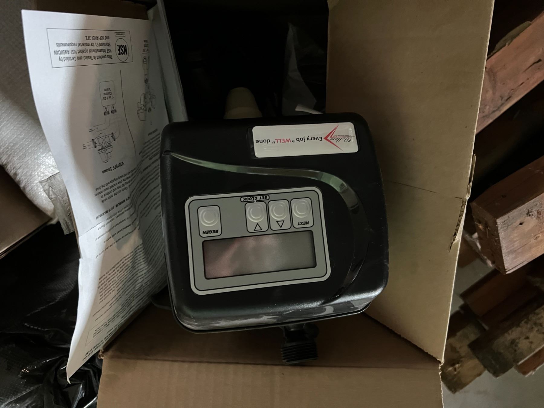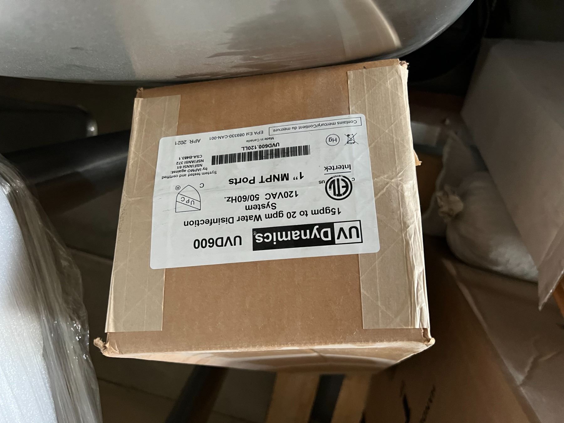 WATER FILTRATION SYSTEM. PENTAIR BIG BLUE PAPER FILTER, WATER SPECIALIST PARTICULATE FILTER 68" HIGH WITH A WALLACE PROGRAMMABLE CONTROL AND BACKWASH. UV DYNAMIC UVD 600 WATER DISINFECTION SYSTEM-ALL NEW IN BOXES. WITH ALL FITTINGS AND CONTROLS SOLID PARTICLE CHARCOAL FILTRATION WITH UV