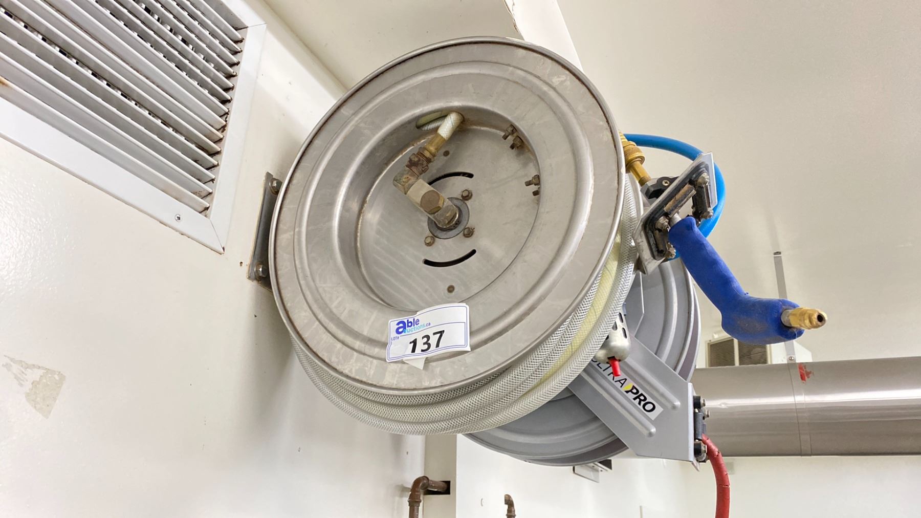 WATER HOSE REEL MUST BE REMOVED FROM THE WALL *REQUIRES TOOLS & LADDER FOR REMOVAL*
