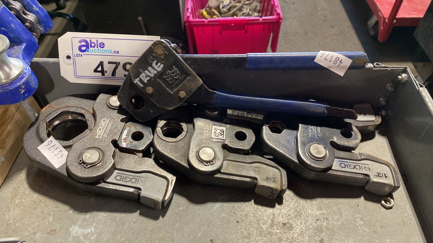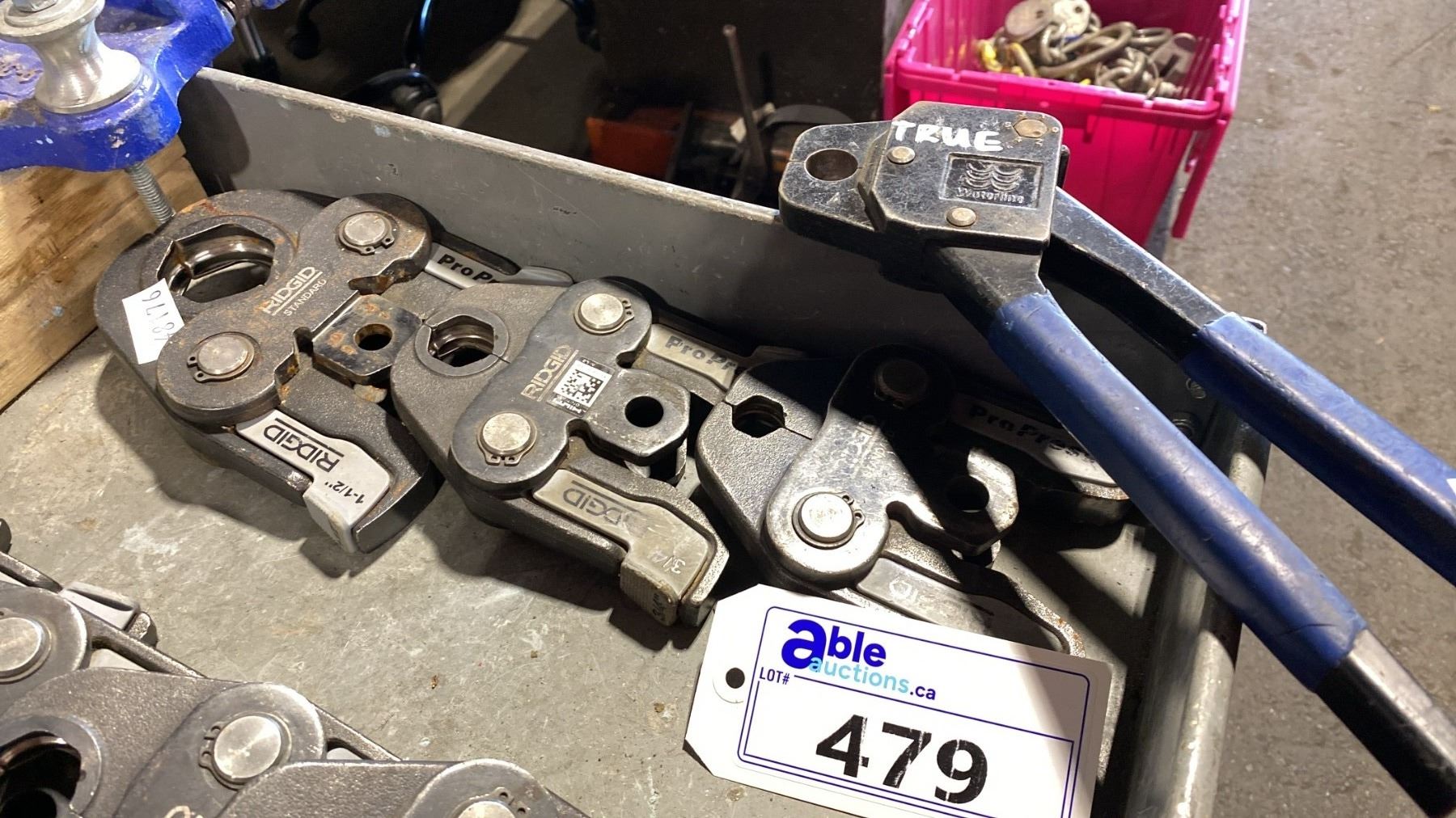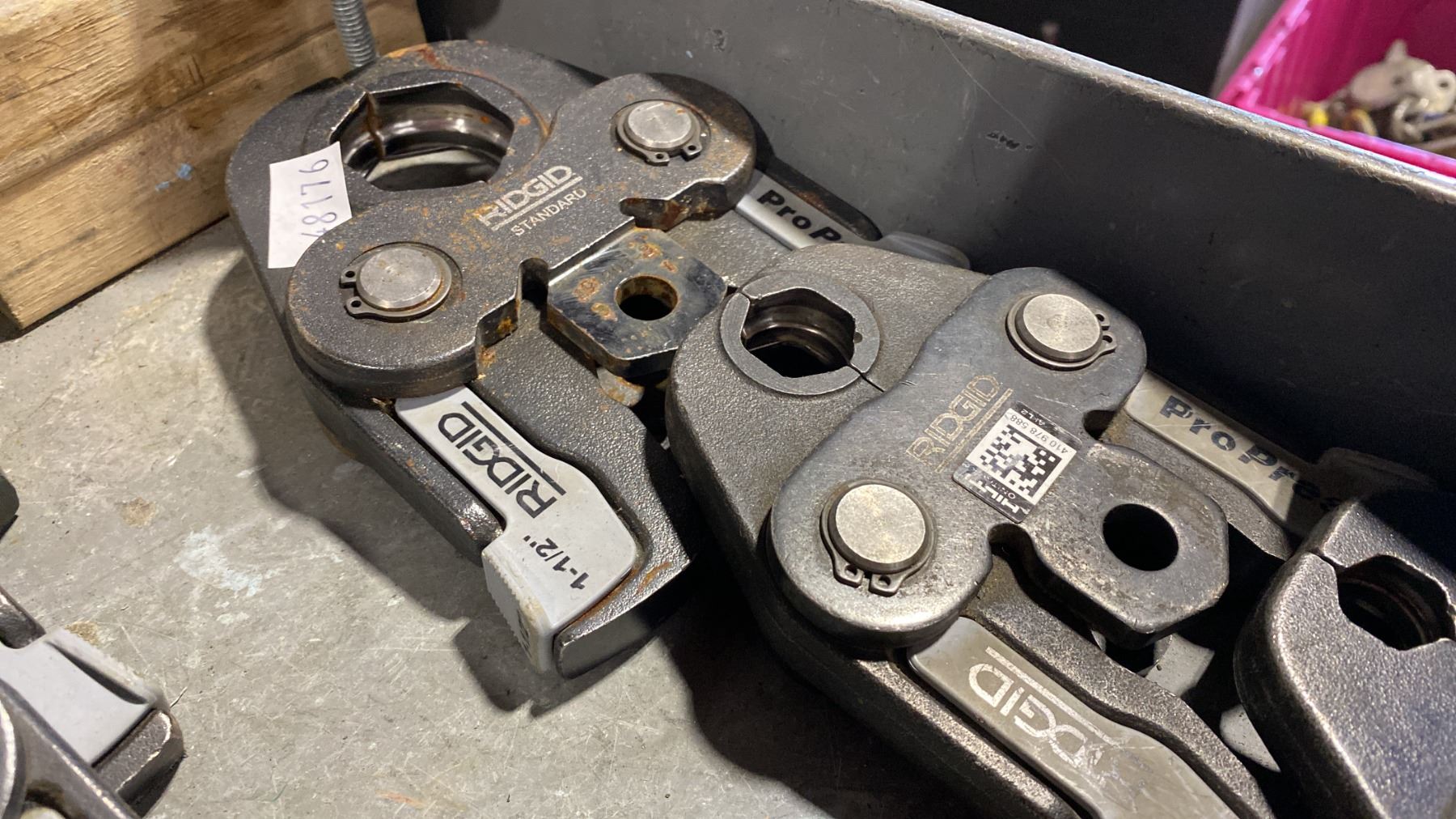 WATERLINE ANGLE HEAD CRIMP TOOL & 3 ASSORTED RIDGID PRESS JAWS