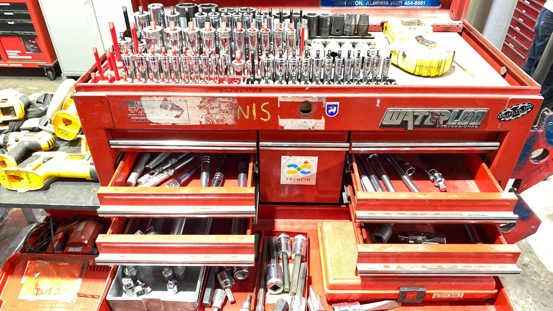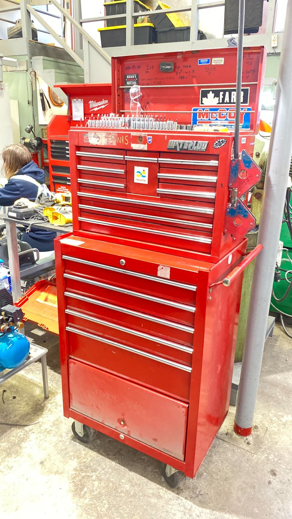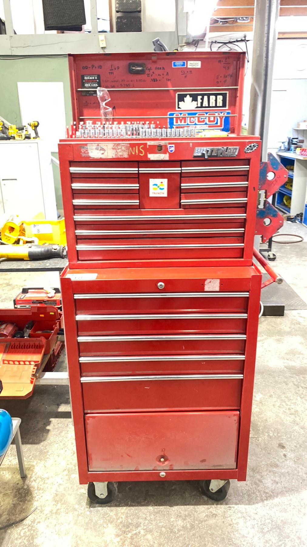 WATERLOO PROFESSIONAL 2 PC ROLLING MECHANICS TOOL CABINET WITH CONTENTS - LARGE ASSORTMENT OF SOCKETS, RATCHETS, COMBINATION WRENCHES, PUNCHES, & PRY BARS