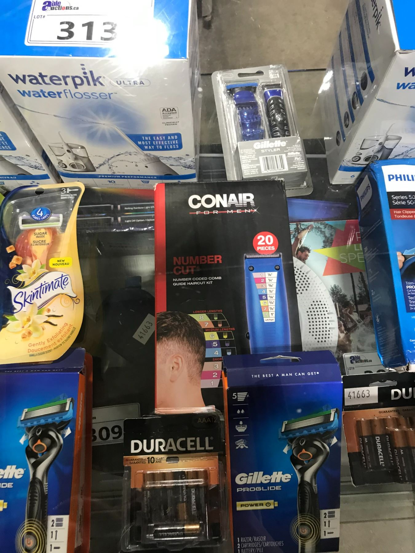 WATERPIK WATERFLOSSER ULTRA KIT, CONAIR NUMBER ONE CUT NUMBER CODED HAIRCUT KIT, GILLETTE PROGLIDE RAZOR, GILLETTE 3 IN 1 STYLER, AND 2 INCOMPLETE PACKS OF DURACELL AAA BATTERIES