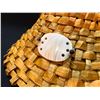 WAYNE BELL, HAND WOVEN FIRST NATIONS HAT WITH ABALONE SHELL ACCENT, APPROX. 7'' TALL X 13'' WIDE