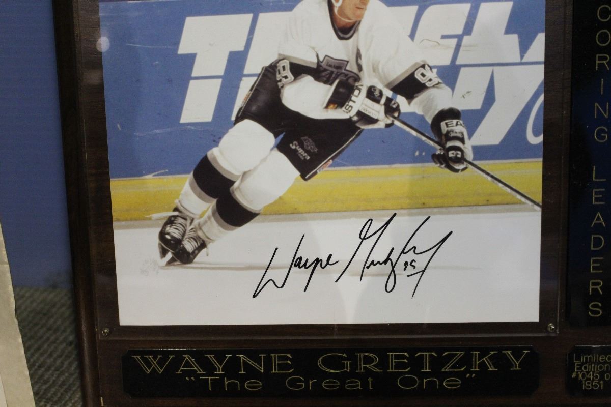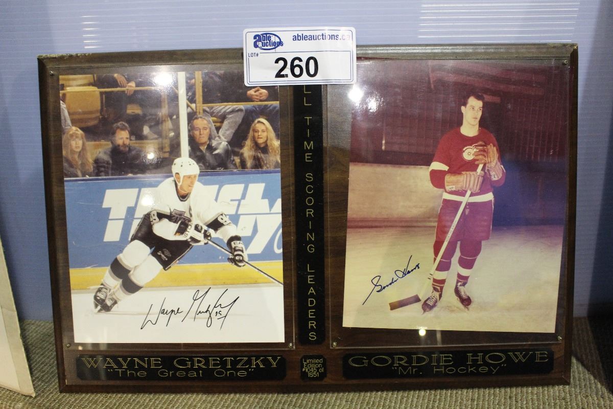 WAYNE GRETZKY / GORDIE HOWE ALL TIME SCORING LEADERS, SIGNED, LIMITED EDITION 1045/1851 DECORATIVE COLLECTORS PLAQUE