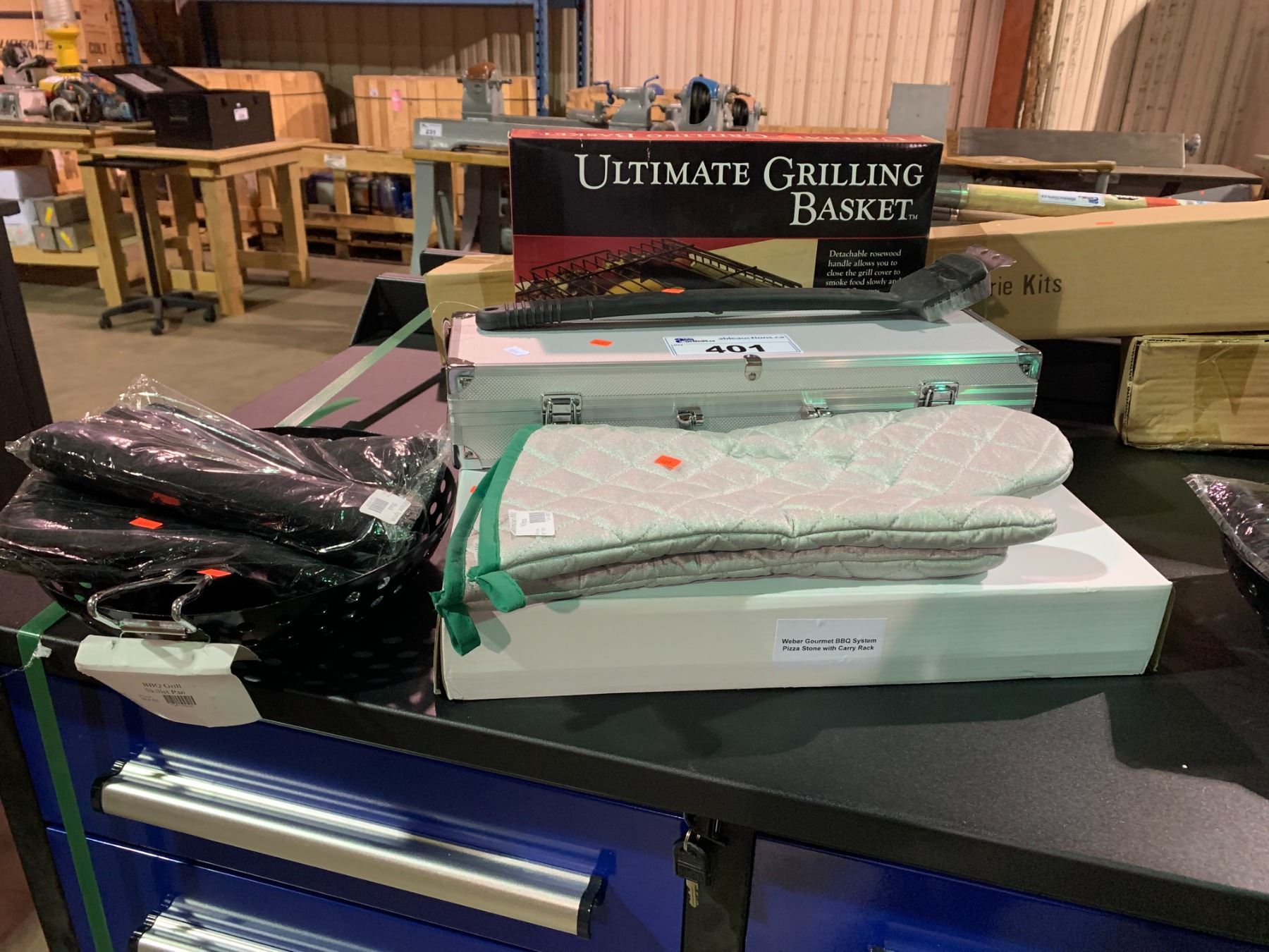 WEBER BBQ PIZZA STONE, ULTIMATE FISH BASKET, BBQ TOOL SET IN CASE, BBQ BRUSH, COATED GRILLING