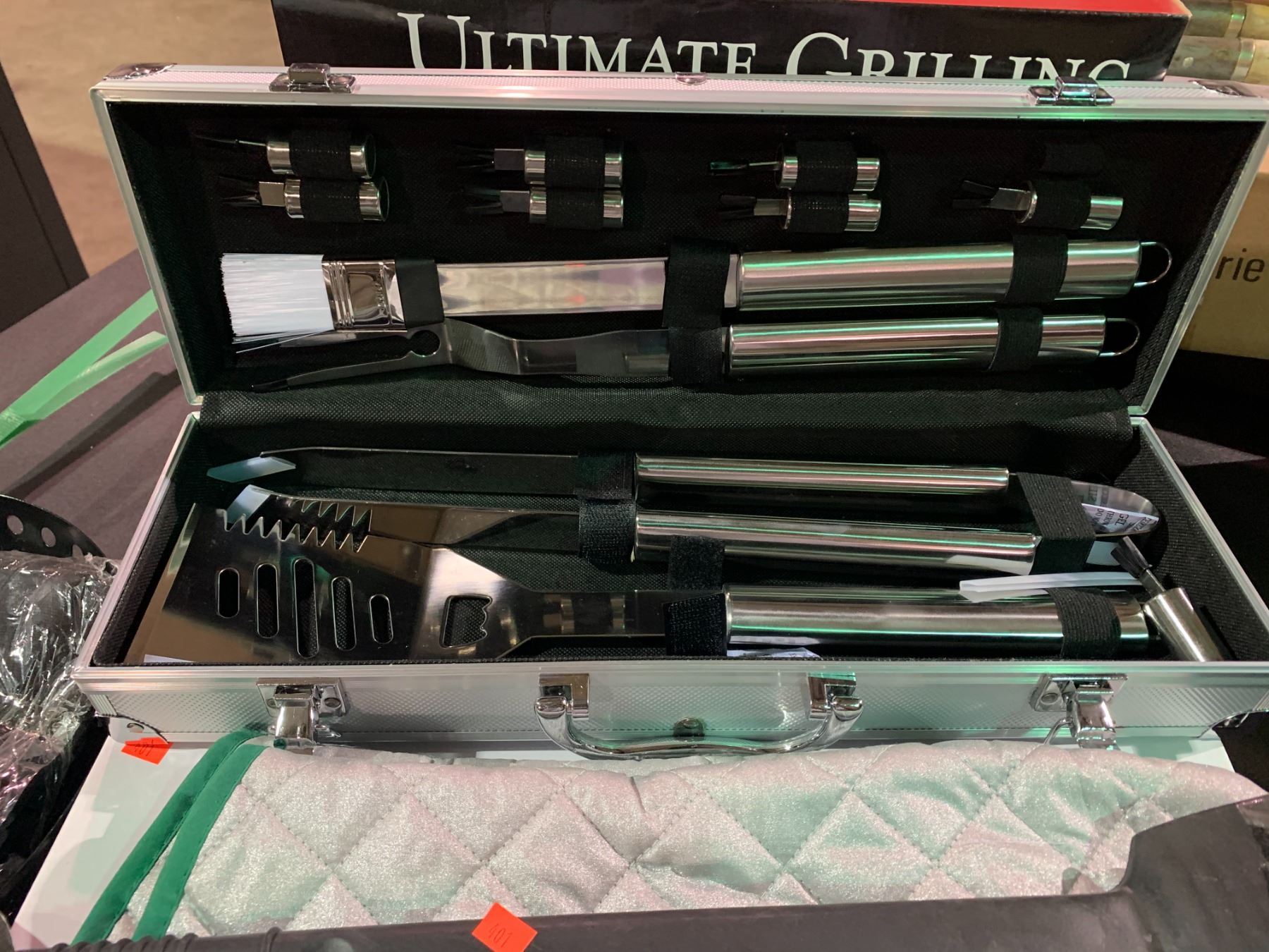 WEBER BBQ PIZZA STONE, ULTIMATE FISH BASKET, BBQ TOOL SET IN CASE, BBQ BRUSH, COATED GRILLING WOK, 2 APRONS, BBQ MITS & ROTISSERIE
