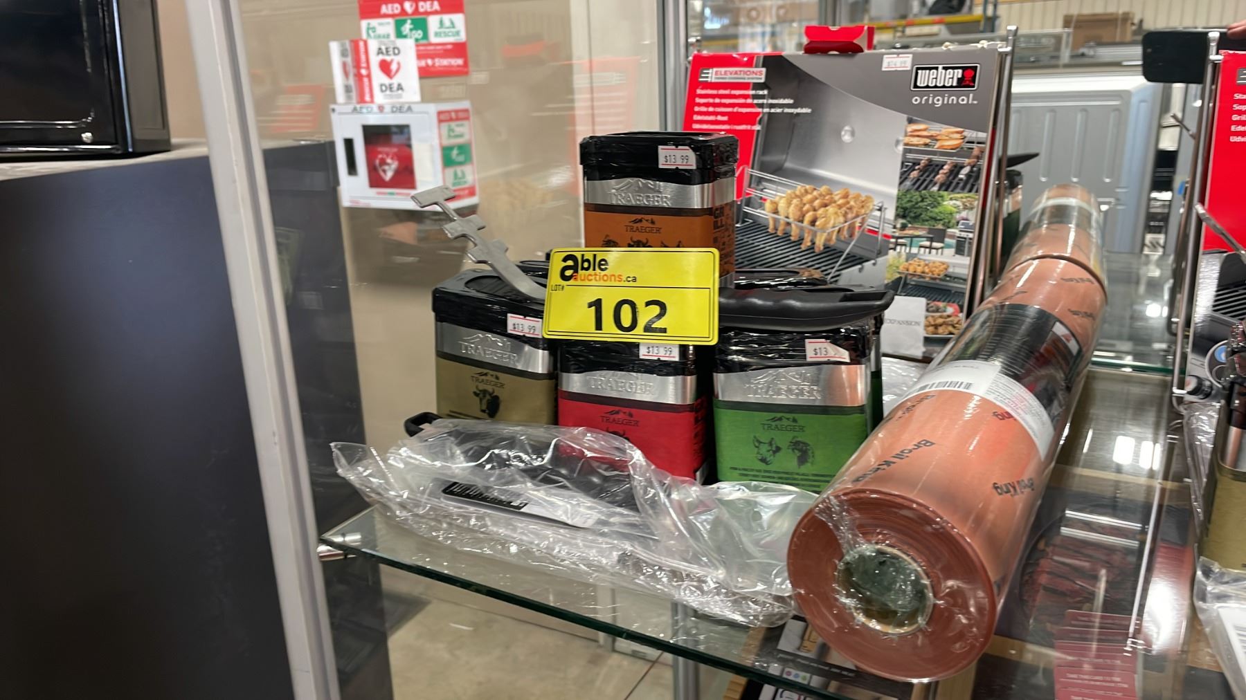 WEBER ELEVATED RACK, GRILLING LINERS, BROIL KING MEAT WRAP PAPER, ASSORTED TRAEGER SPICES &