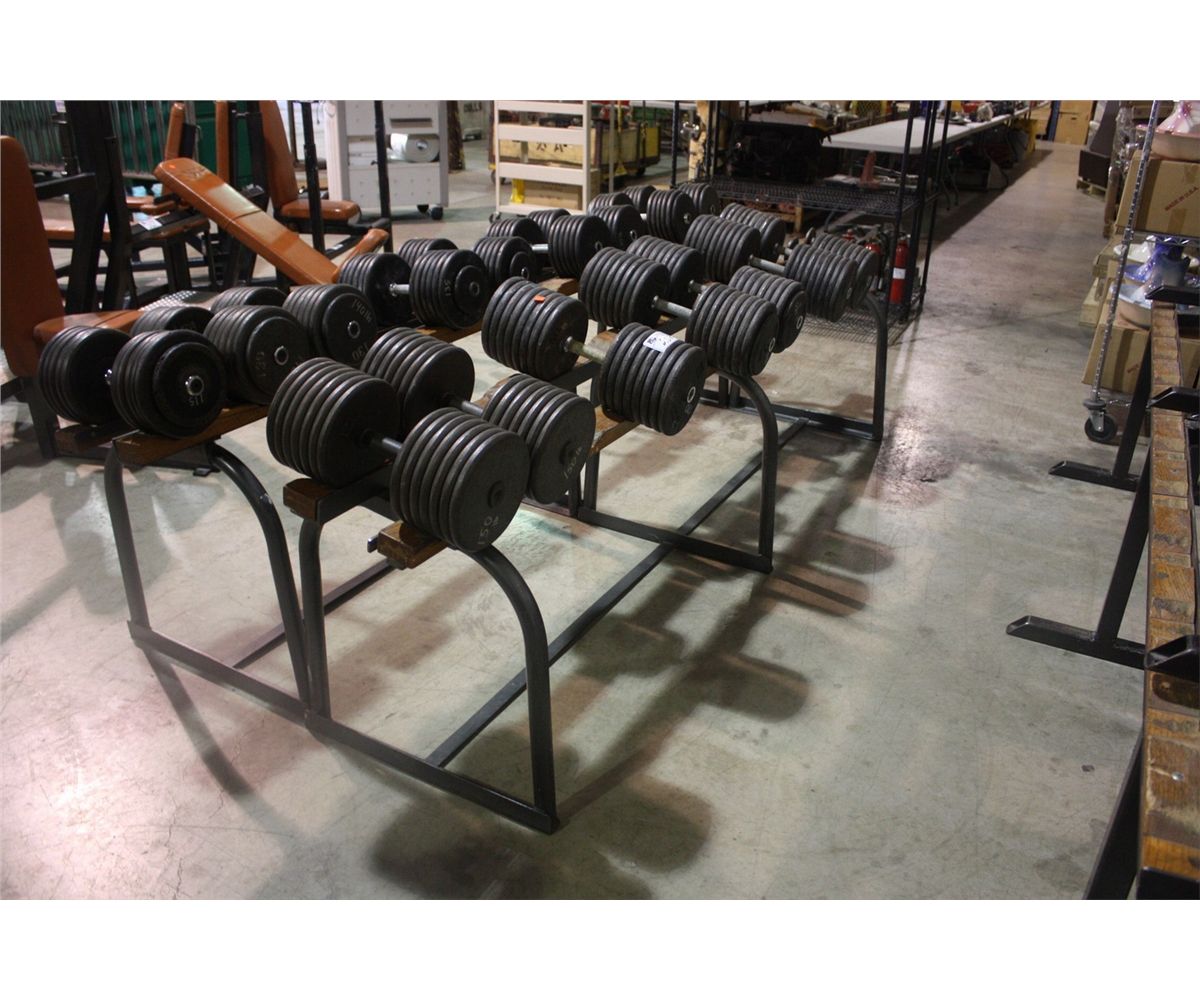 WEIGHT RACK W/9 ASSORTED SIZE DUMBBELLS