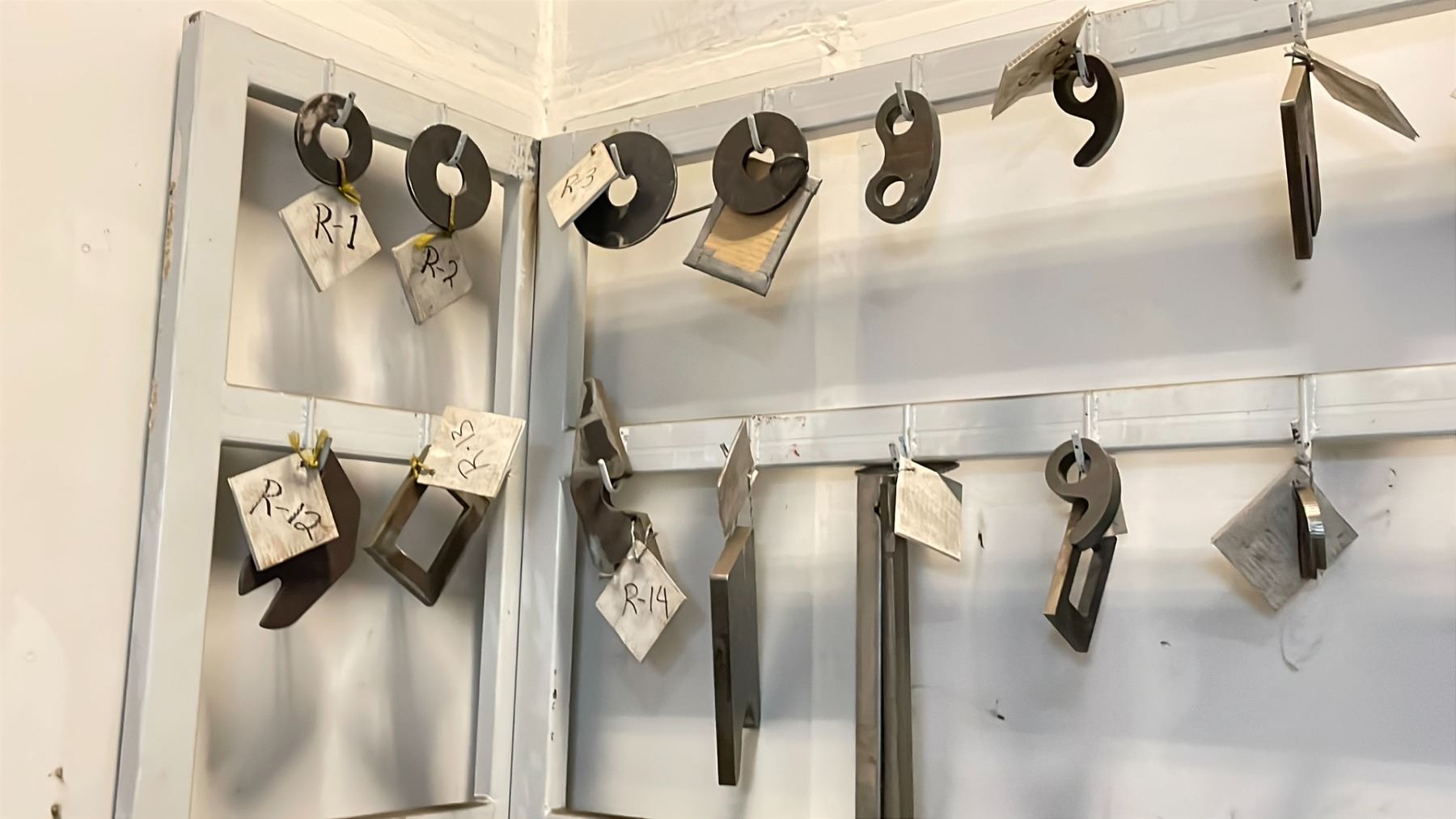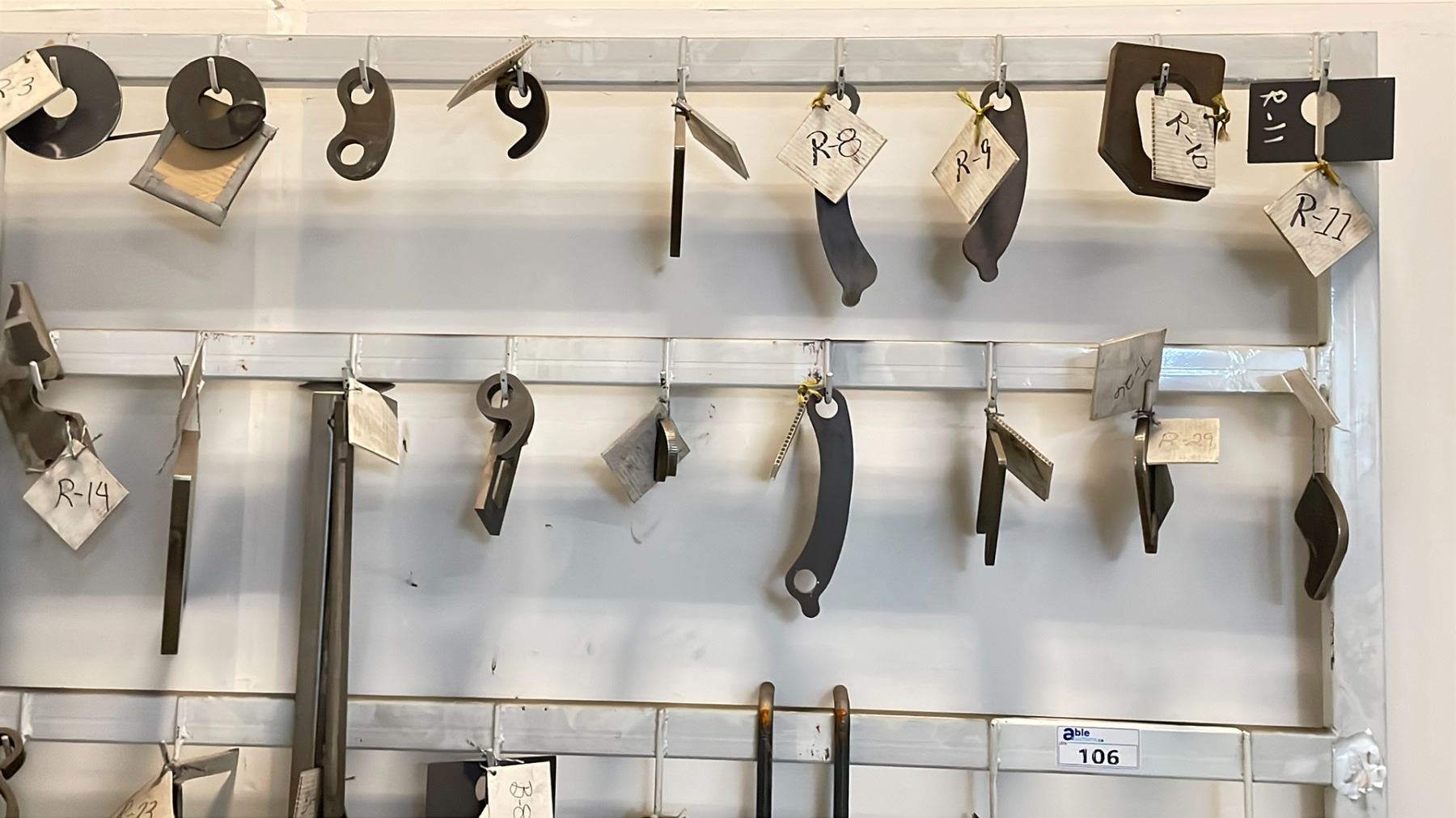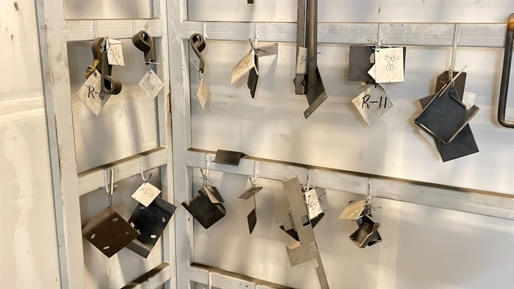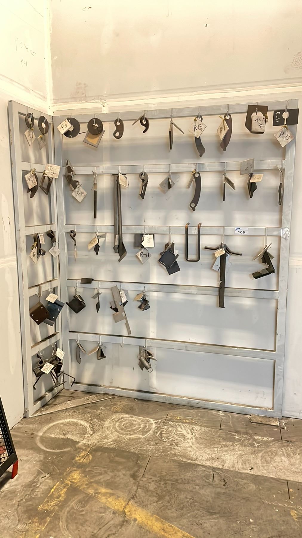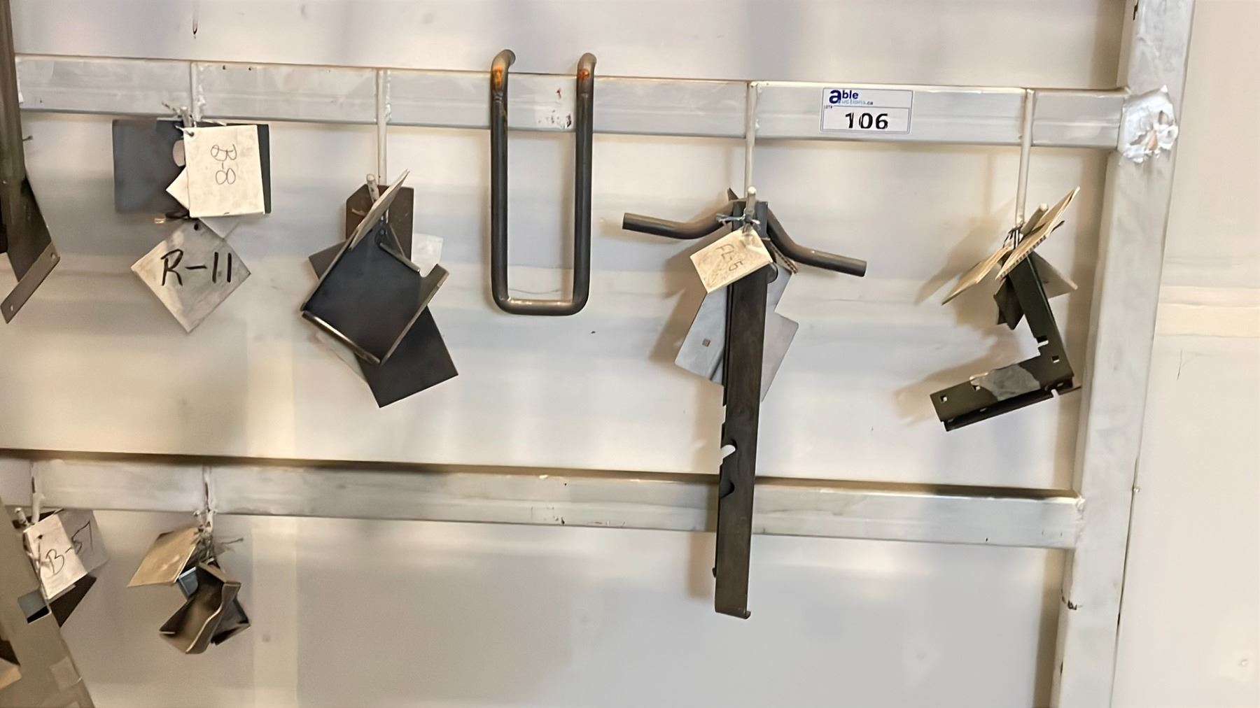 WELDED METAL PARTS STORAGE RACK WITH A LARGE ASSORTMENT OF FABRICATED STEEL COMPONENTS