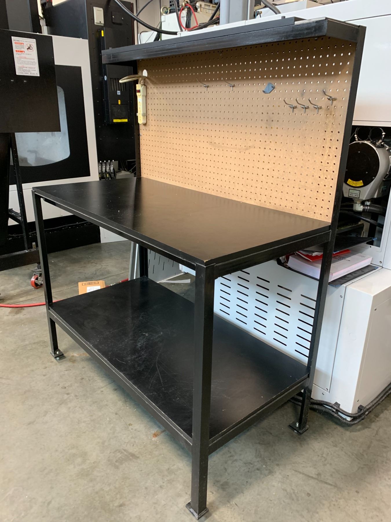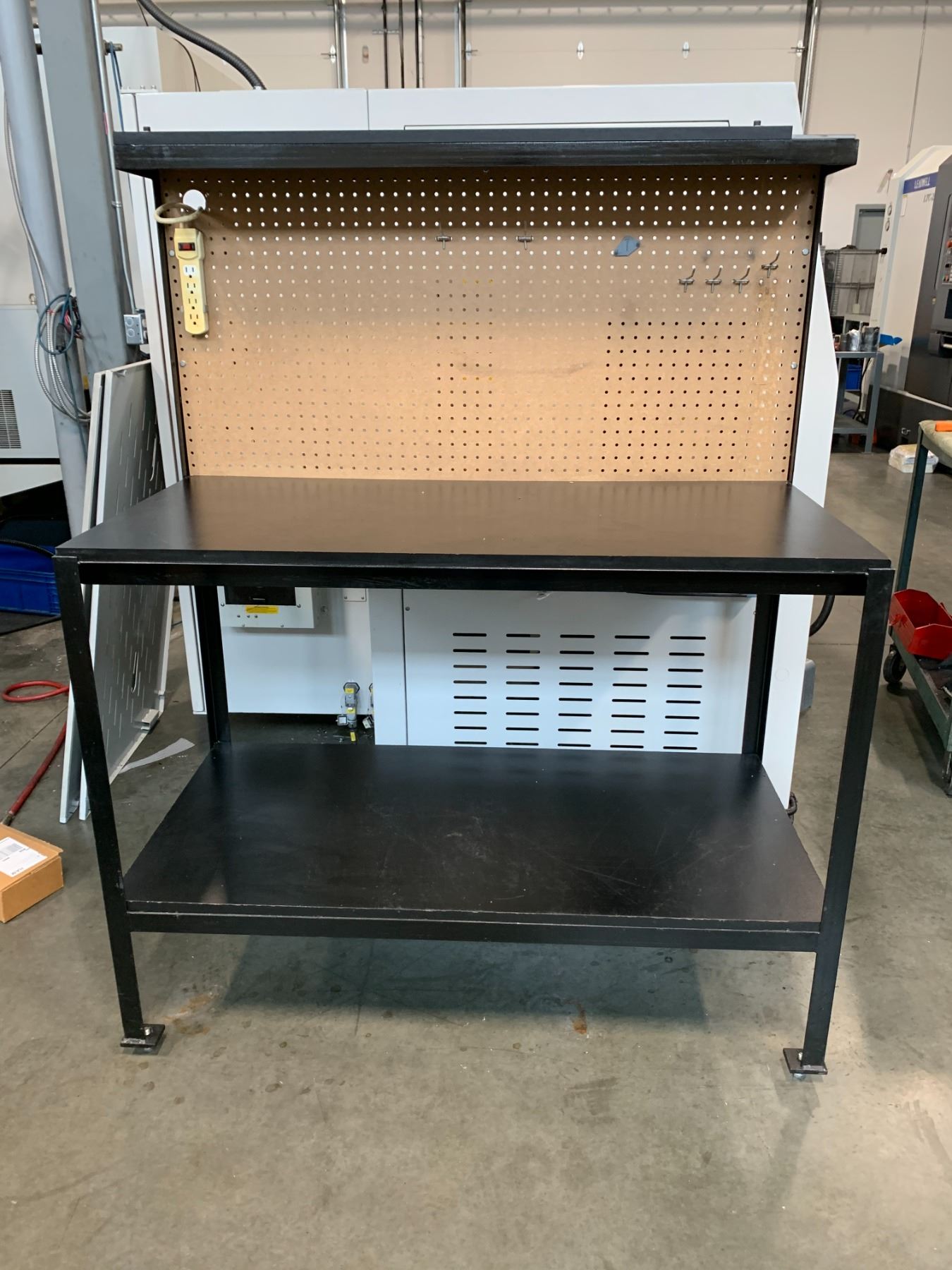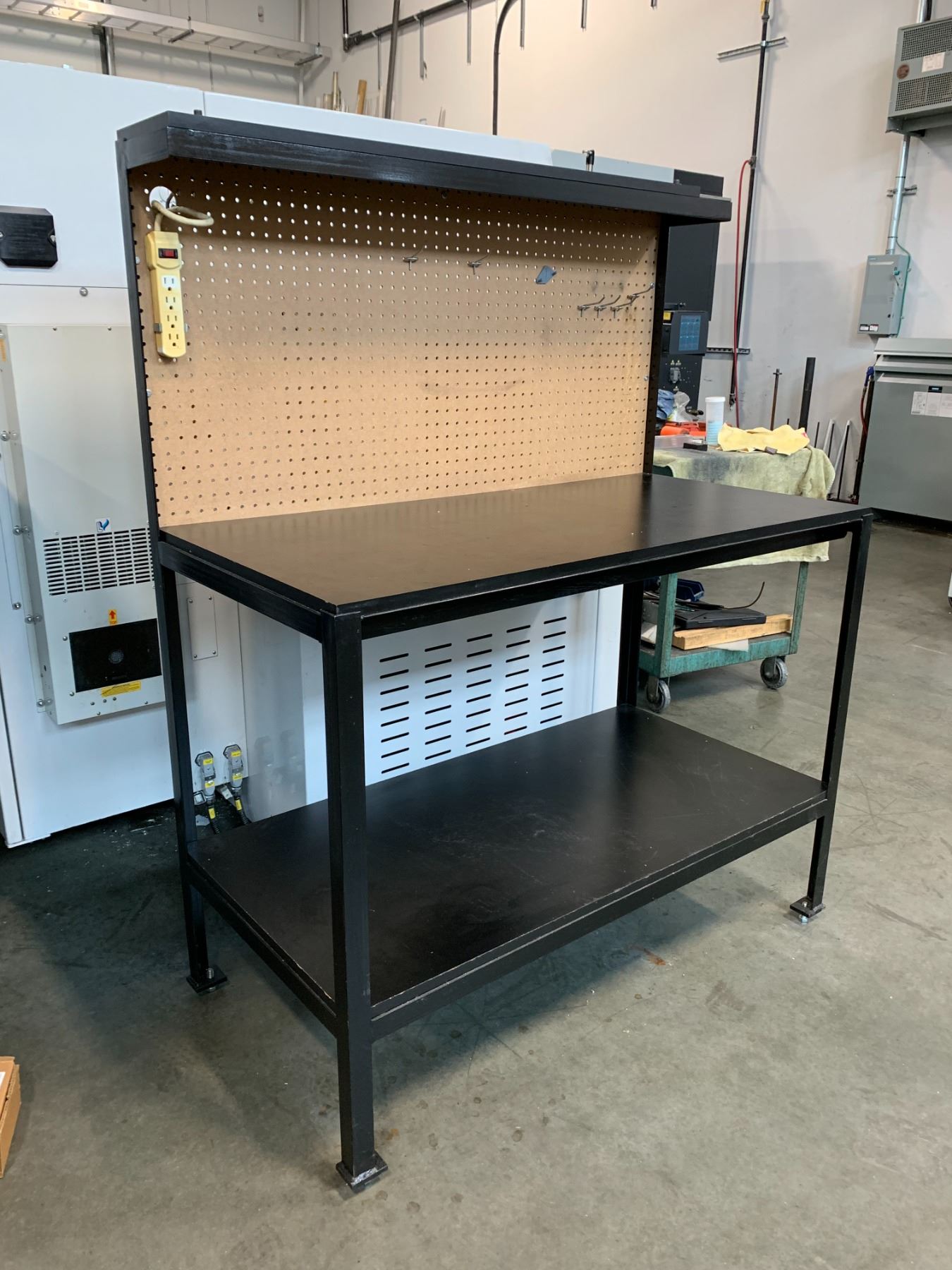 WELDED STEEL BLACK WORKBENCH WITH PEGBOARD BACK - APPROX. 4FT X 2FT X 5FT HIGH
