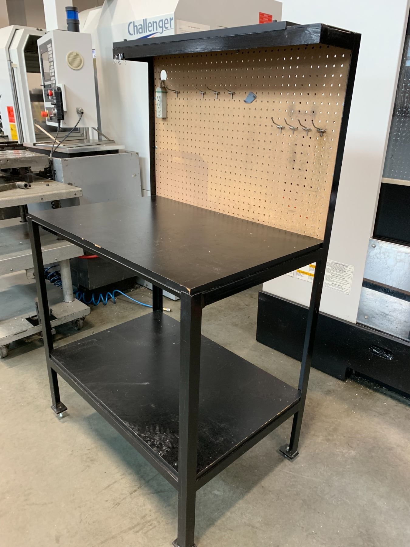 WELDED STEEL WORKBENCH WITH PEGBOARD BACK-APPROX.3FT X 2FT X 5FT HIGH