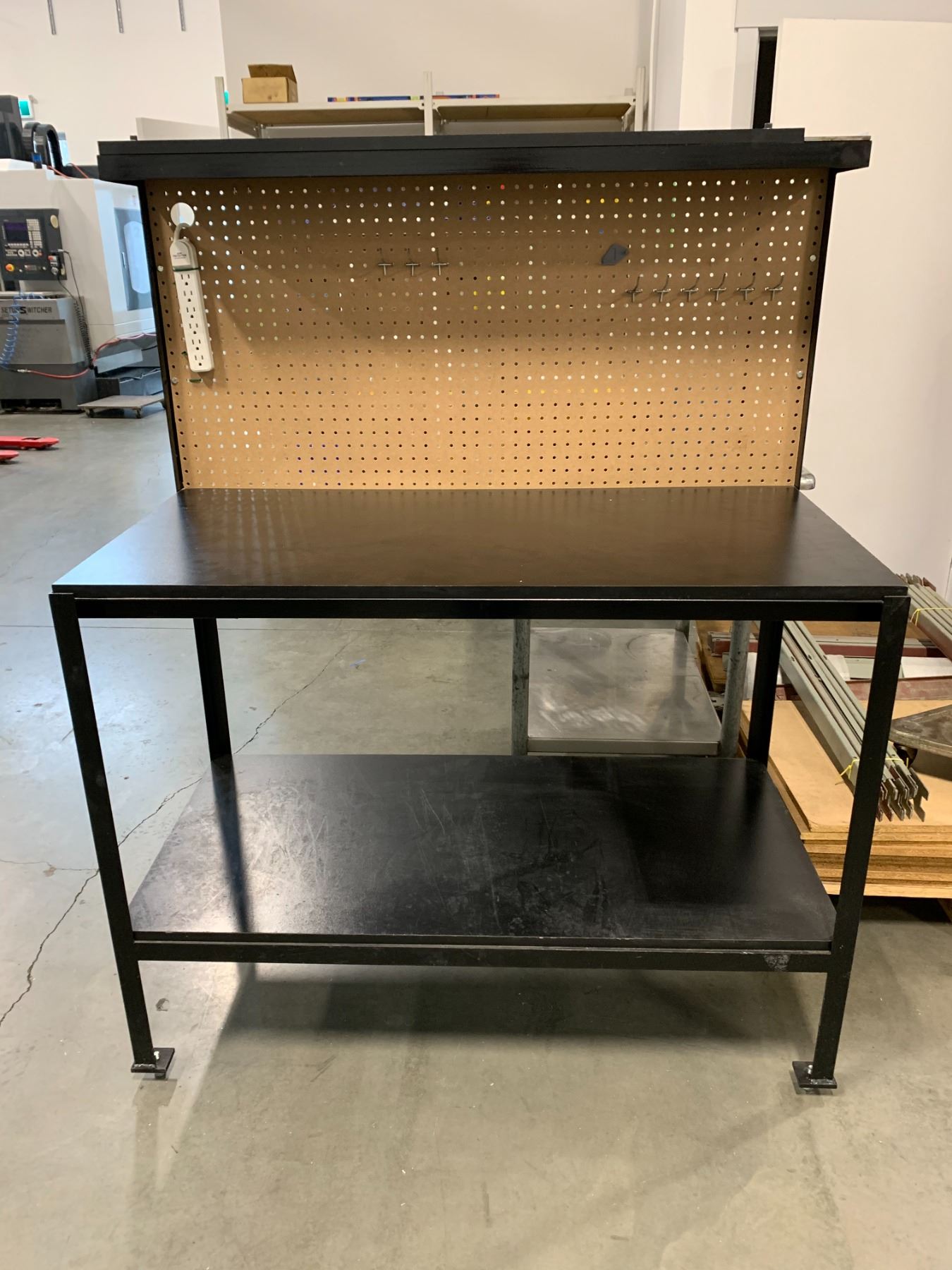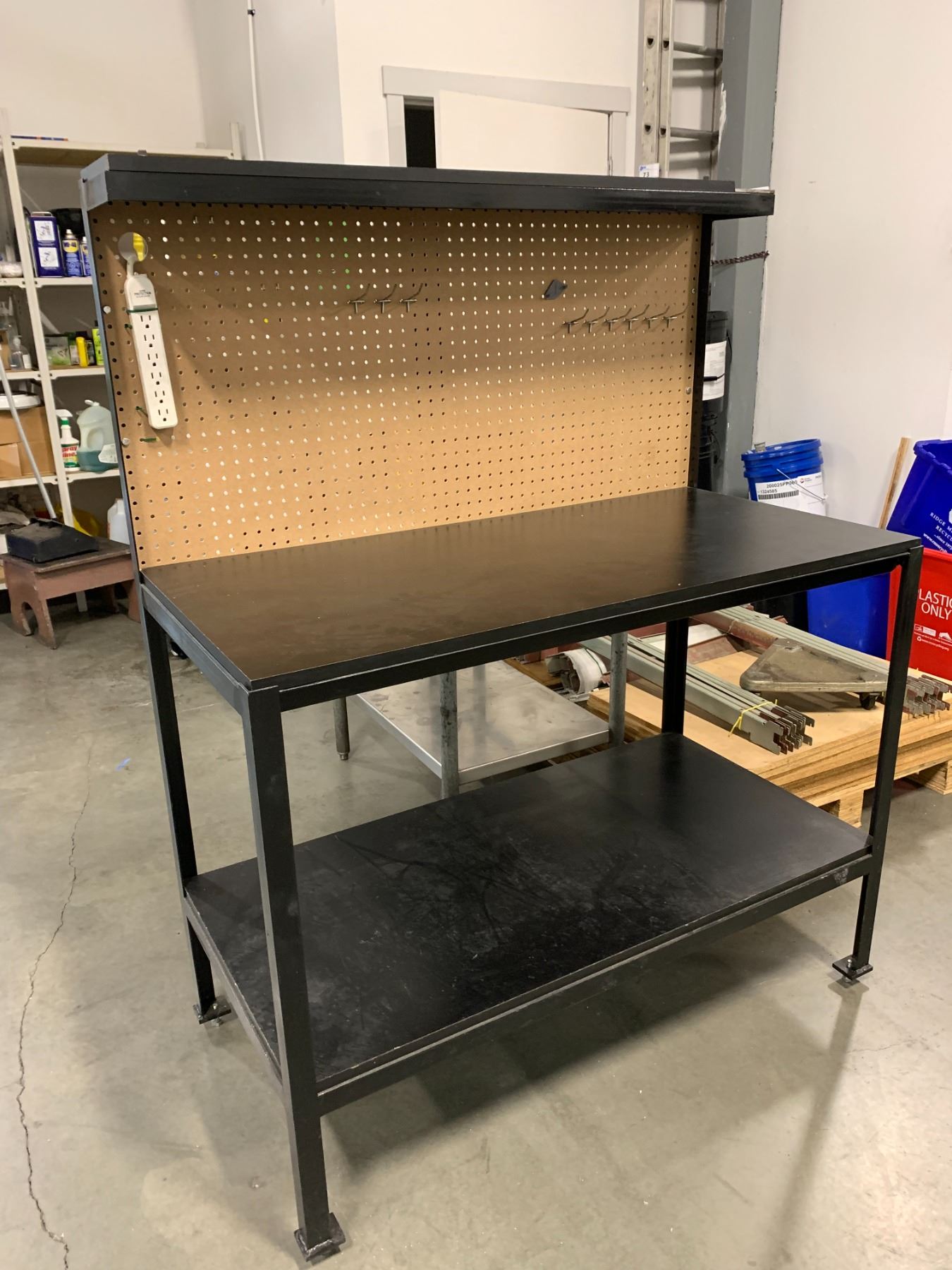 WELDED STEEL WORKBENCH WITH PEGBOARD BACK-APPROX.4FT ACROSS X 2FT WIDE X 5FT HIGH