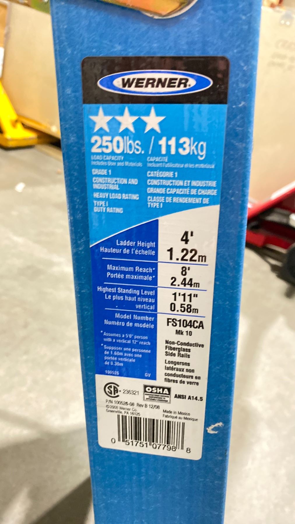 WERNER 4' 25LBS CAPACITY FIBERGLASS AND ALUMINUM STEPLADDER