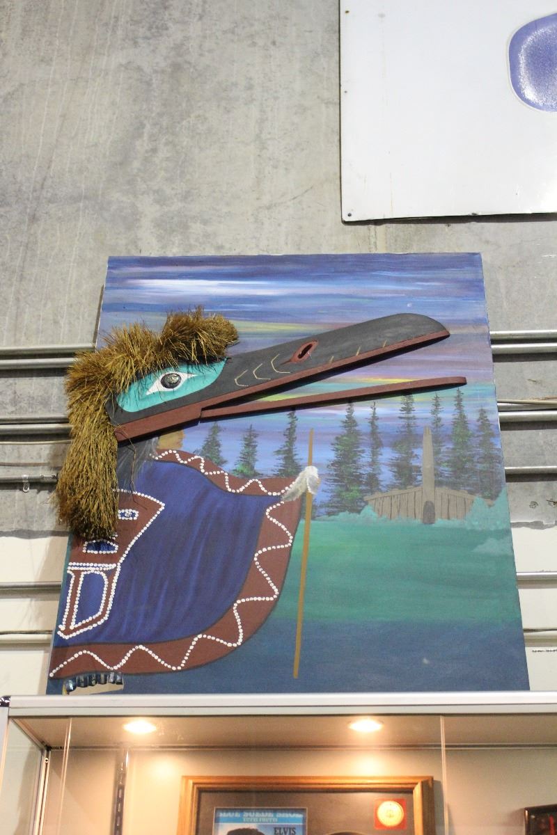 WEST COAST NATIVE ORIGINAL ART PAINTING WITH WOOD CARVED SCULPTURE DECORATIVE PIECE