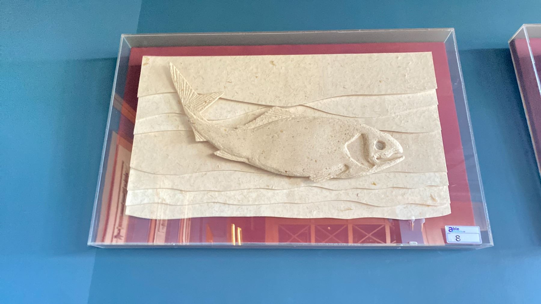 WEST COAST SALMON ART DISPLAY IN PLEXIGLASS SHOWCASE 4 FT L X 2.5B FT W