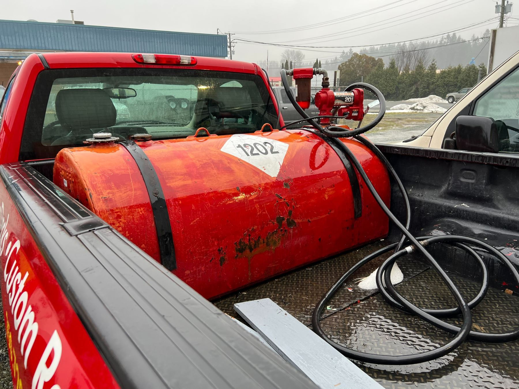 WESTEEL TIDY TANK 590 L. FILL-RITE ELECTRIC PUMP WITH FILTER 1 YEAR OLD 30' HOSE WITH NOZZLE