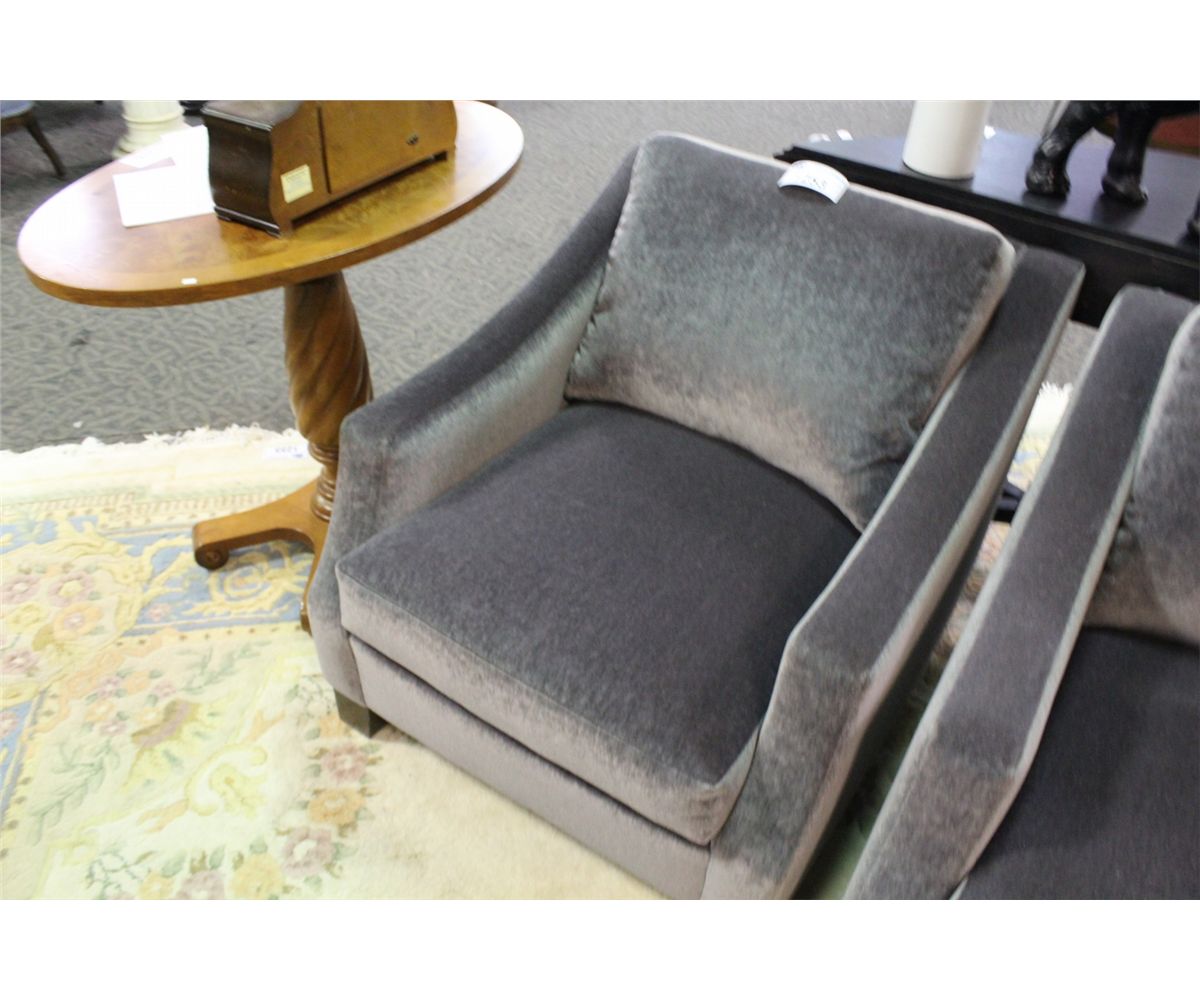 WESTERN DESIGNER UPHOLSTERED CHARCOAL LIVING ROOM LOUNGE CHAIRS, LIKE NEW CONDITION