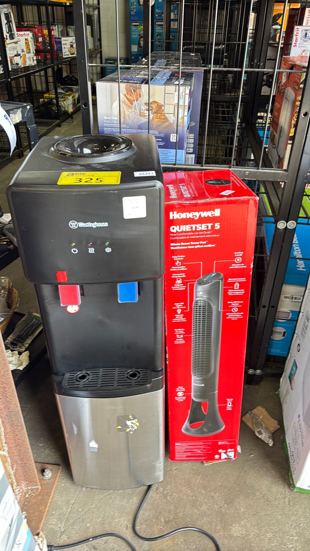 WESTINGHOUSE JUG WATER DISPENSER AND HONEYWELL TOWER FAN QUITE SET 5