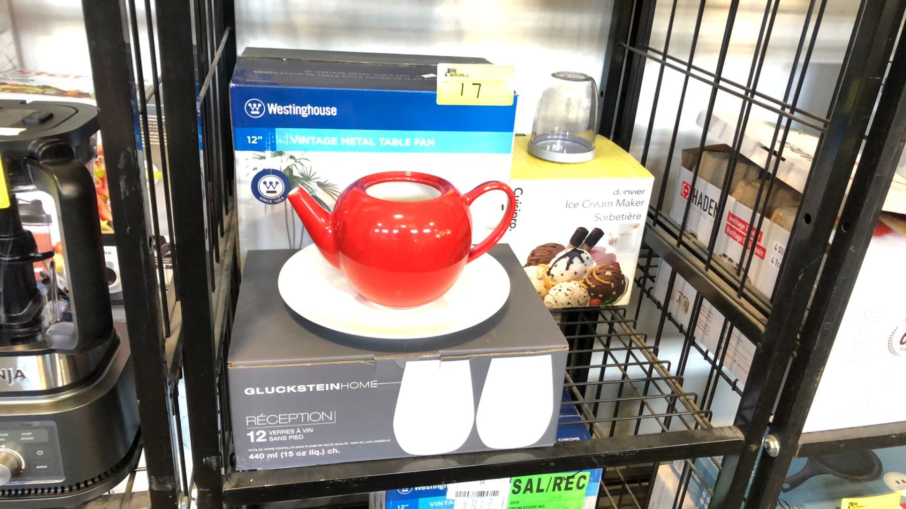 WESTINGHOUSE VINTAGE LOOK TABLE FAN, GLUCKSTEINHOME STEMLESS WINE GLASS AND DONVIER ICE CREAM MAKER AND PLATE WITH DECORATIVE KATE SPADE KETTLE