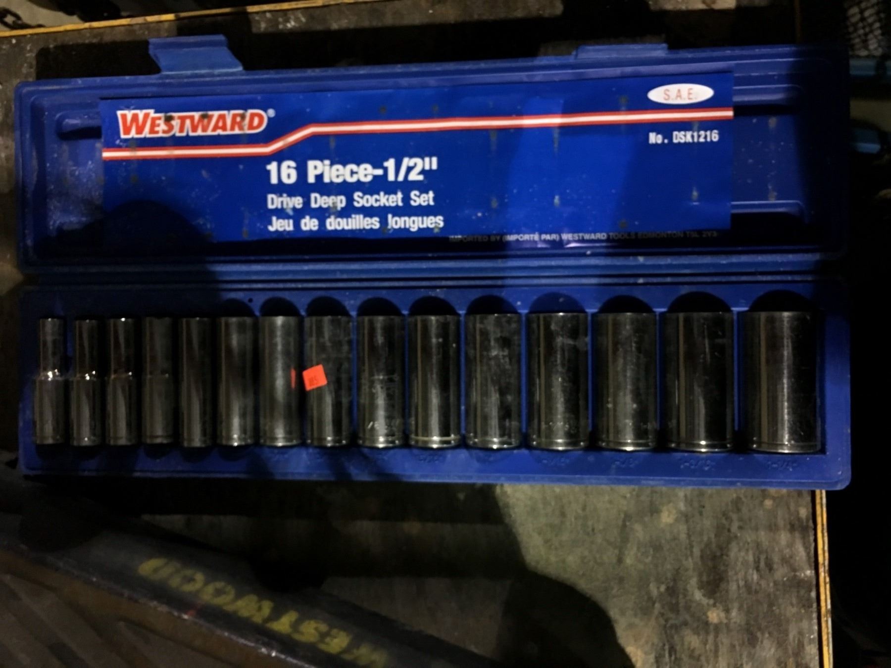 WESTWARD 16 PCS 1/2" DRIVE DEEP SOCKET SET IN CASE