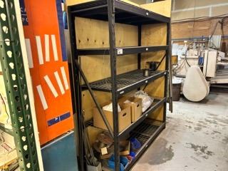 WHALEN BLACK METAL 5 TIER ADJUSTABLE PARTS SHELVING UNIT WITH ASSORTED CONTENTS & LADDERS