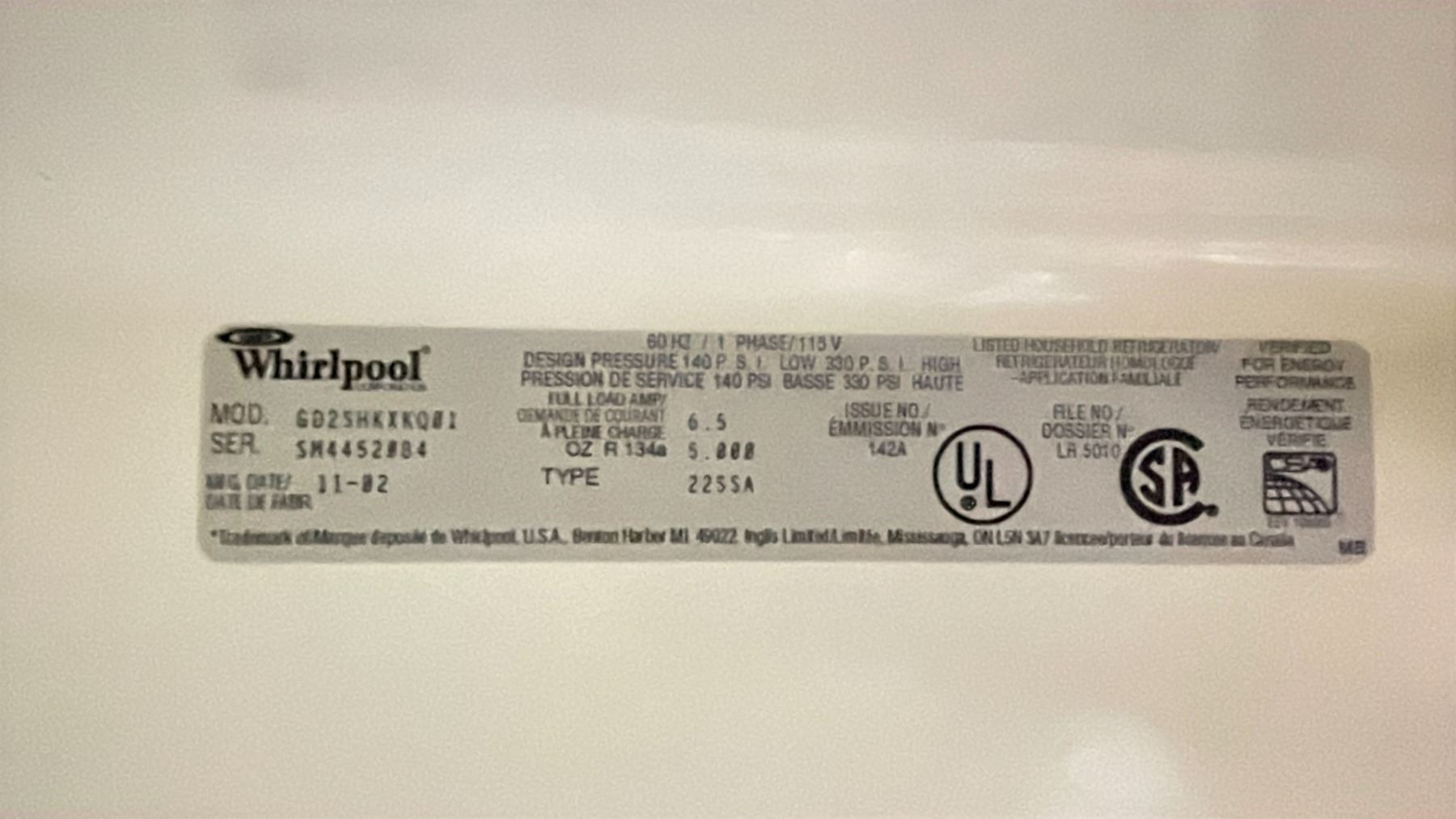 WHIRLPOOL GOLD SIDE BY SIDE FRIDGE 33"W