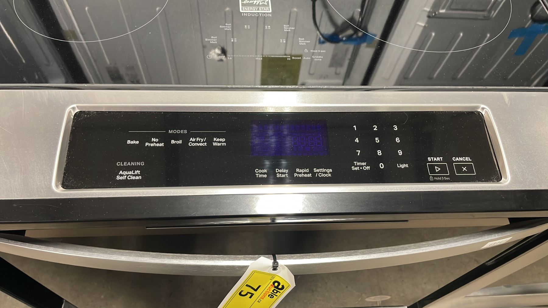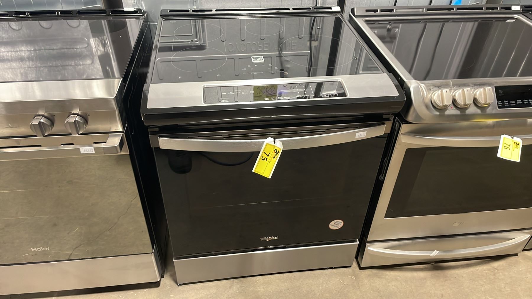 WHIRLPOOL MODEL WSIS5030RZ. 30" INDUCTION RANGE WITH NO PRE-HEAT AIR FRY SELF CLEAN, 4 BURNERS, STORAGE DRAWER SN RD0810766 RETAIL PRICE $3099.99