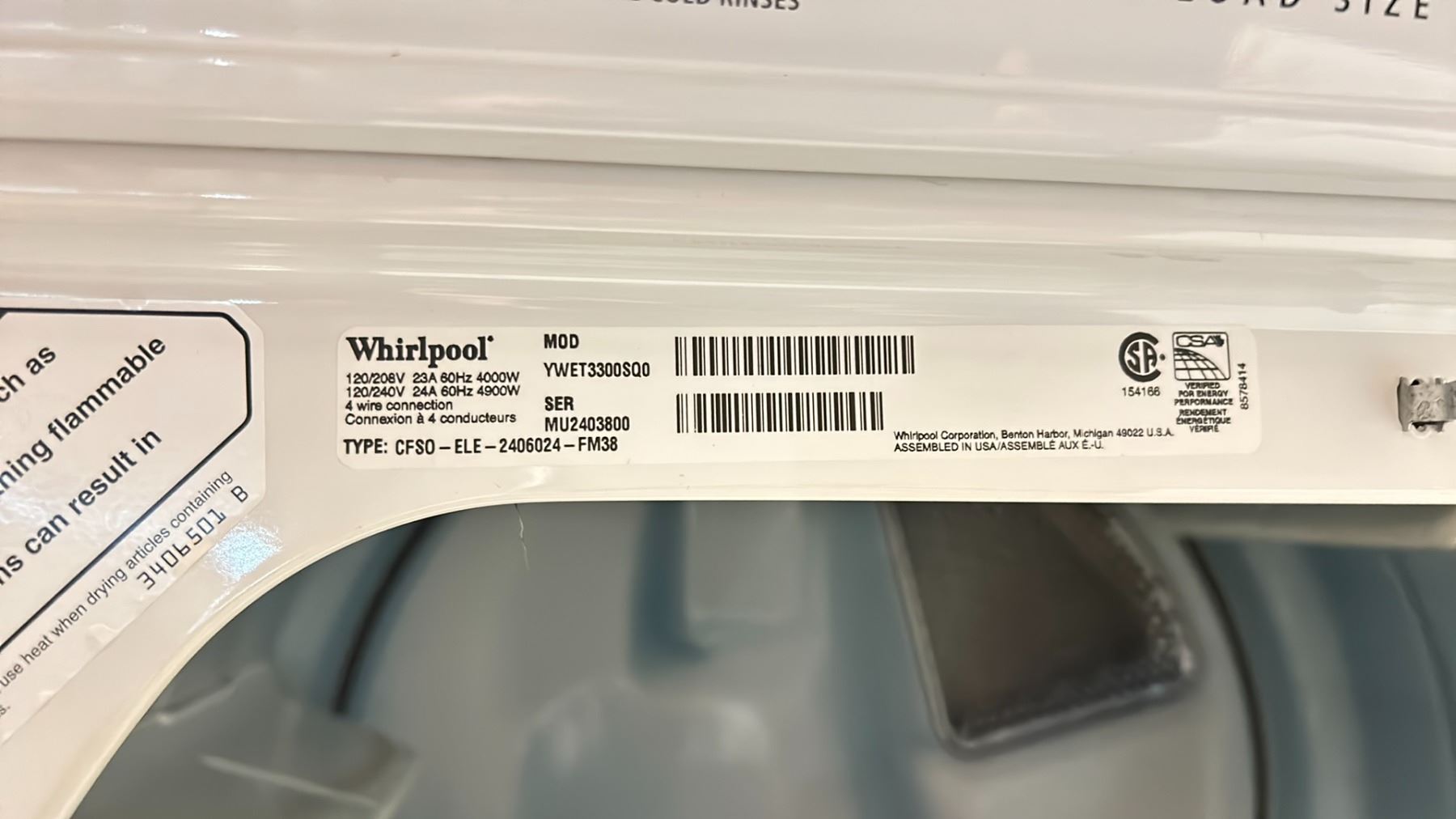 WHIRLPOOL STACKING WASHER/DRYER SET. WORKING. MODEL YWET3300SQ0