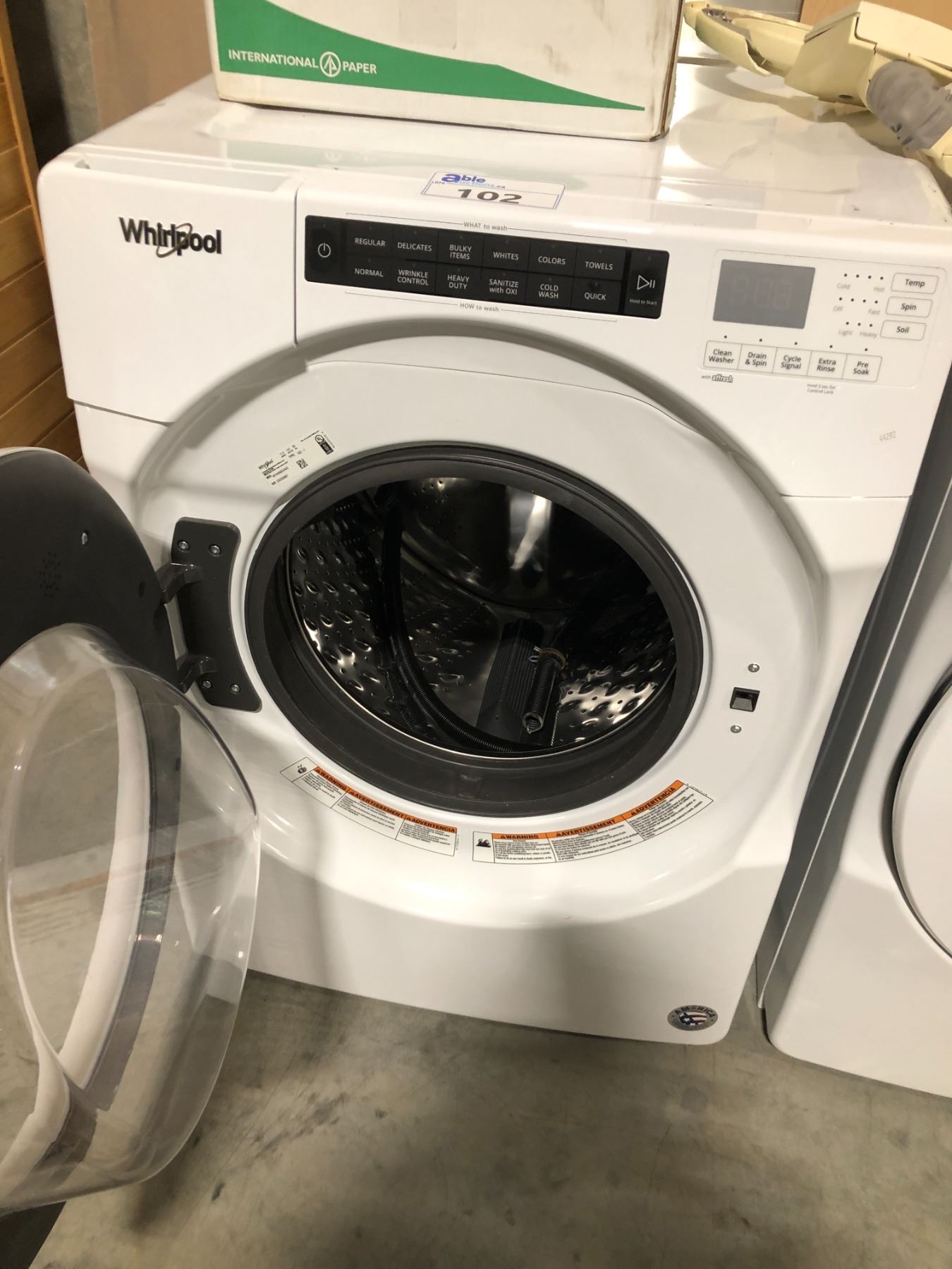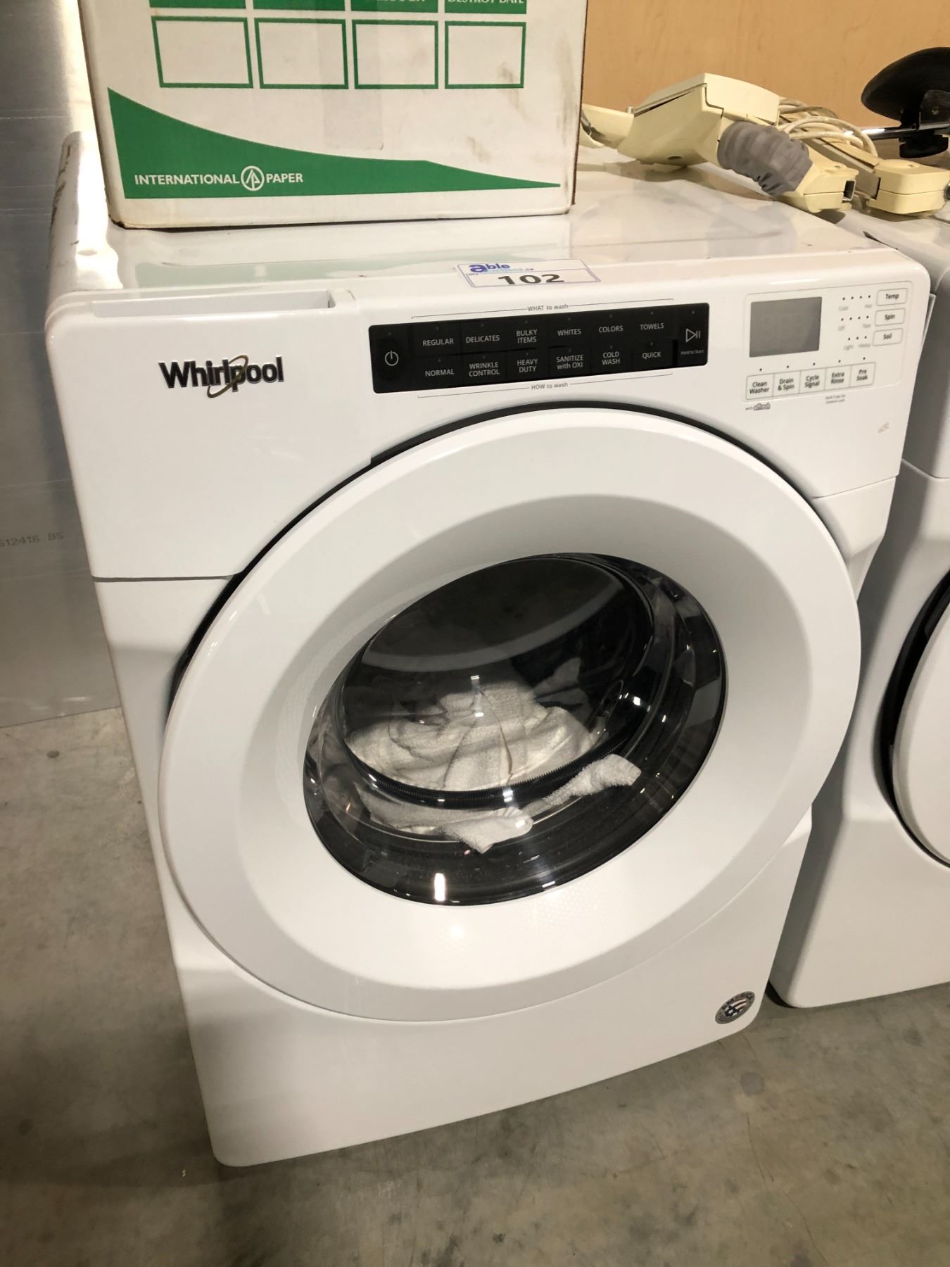 WHIRLPOOL WHITE FRONT LOADING WASHING MACHINE 27  X 39  X 30