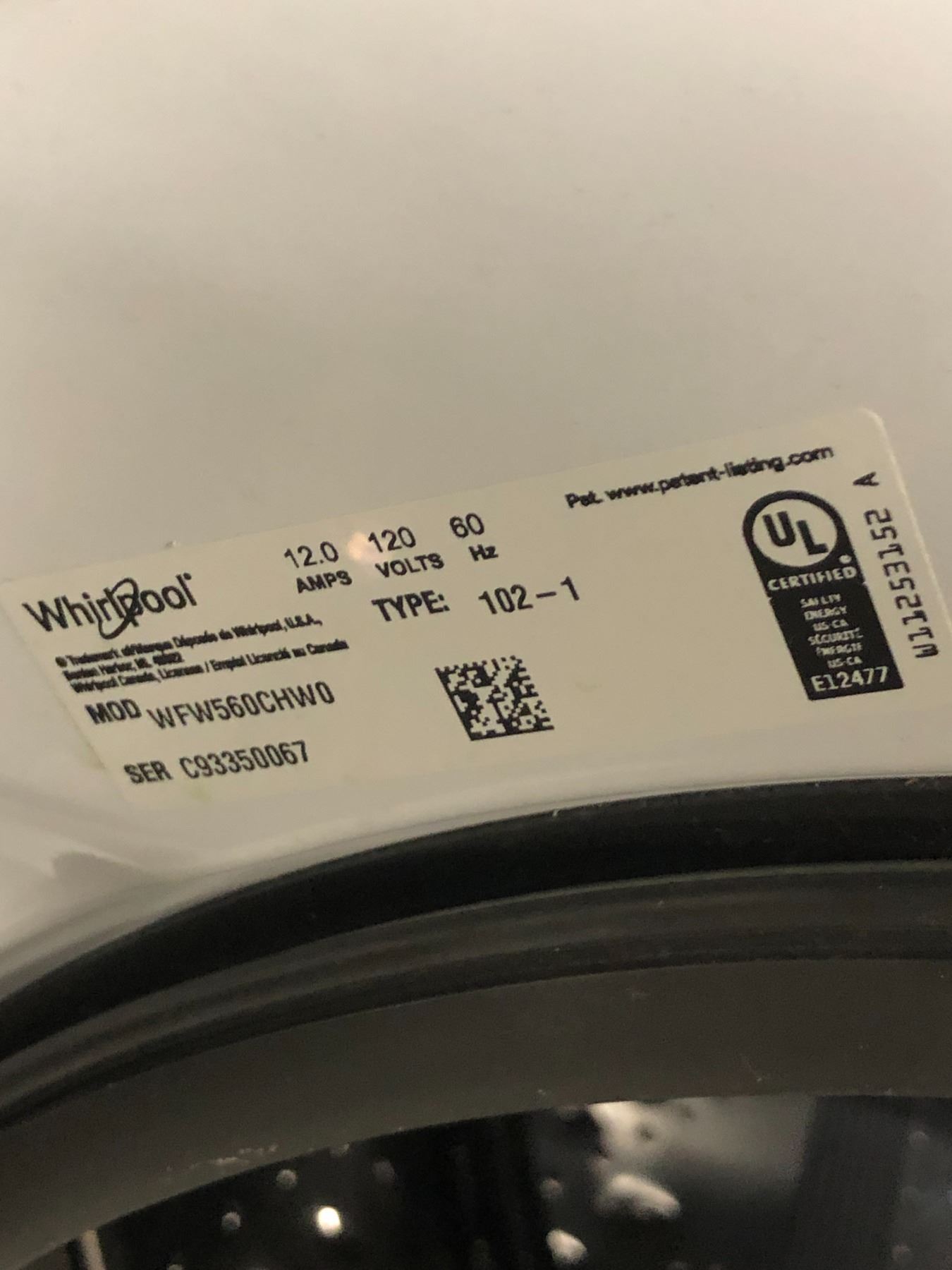 WHIRLPOOL WHITE FRONT LOADING WASHING MACHINE 27" X 39" X 30"