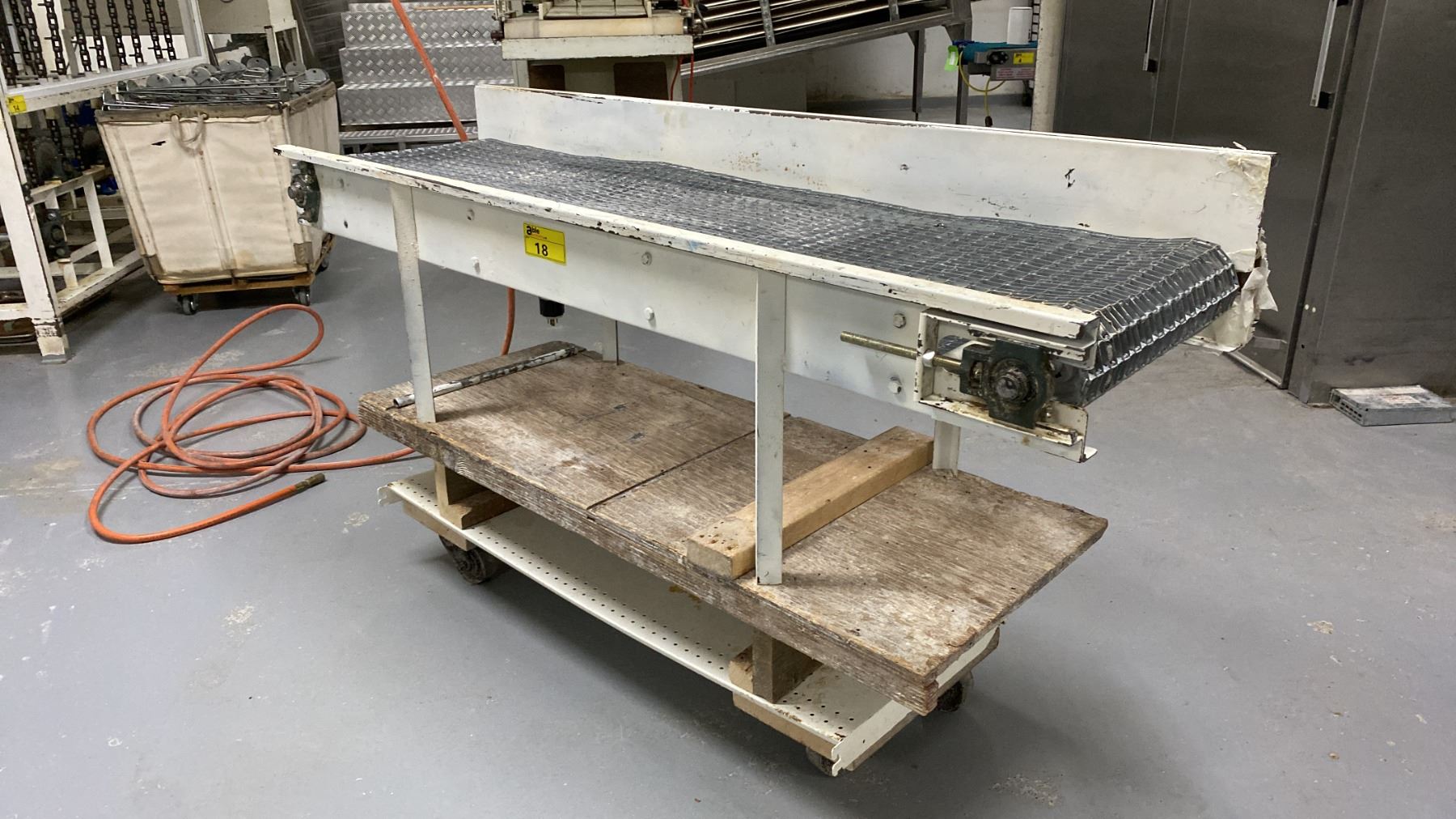WHITE 17"W X 67"L X 35"H COMMERCIAL CHAIN CONVEYOR SYSTEM ON MOBILE CART *CART INCLUDED*