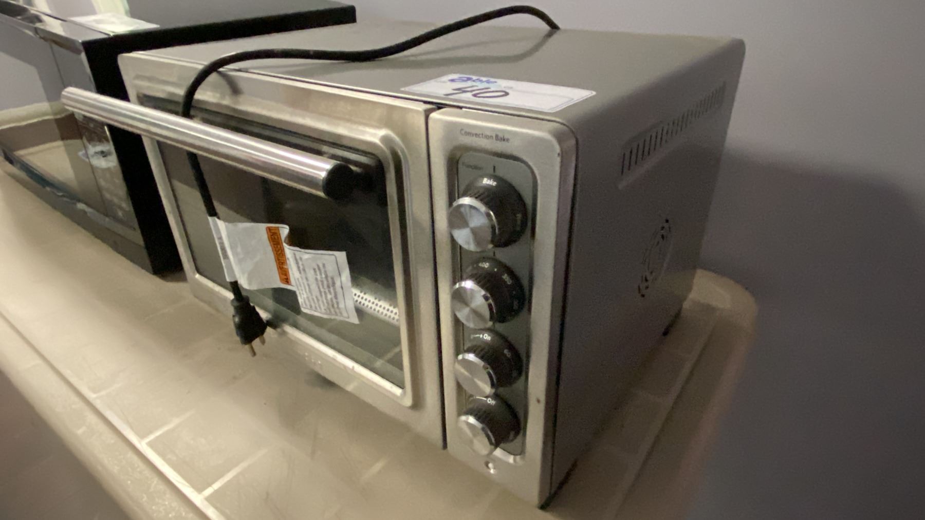WHITE 2 DOOR FRIDGE, BLACK DANBY MICROWAVE, STAINLESS STEEL KITCHENAID TOASTER OVEN,